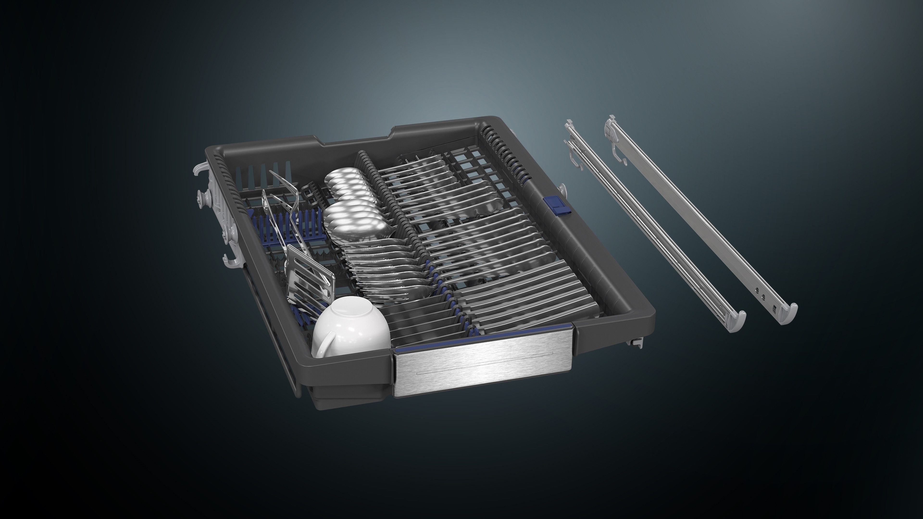 - Besteck- und Küchenkleinteile können platzsparend und sicher aufbewahrt, effektiv gereinigt und bequem entnommen werden - Versenkbares Element auf der rechten Seite zur Platzierung von zusätzlichem Kleingeschirr - Verbesserte Flexibilität durch zwei farbige, klappbare Stachelreihen auf der linken Seite - Klappbare Elemente an der Vorderseite für Besteck mit breiteren Griffen - Blaue Touchpoints: So sehen Sie sofort, was flexibel eingestellt werden kann - Extra Platz für kleines Geschirr (z.B. Schälchen, Espressotassen etc.) oder große Besteckteile (z.B. Suppenkellen, Schneebesen etc.) - Auszugsystem mit Leichtlaufrollen Für 45 cm breite Geschirrspüler mit nachrüstbarer 3. Beladungsebene 4242003943014