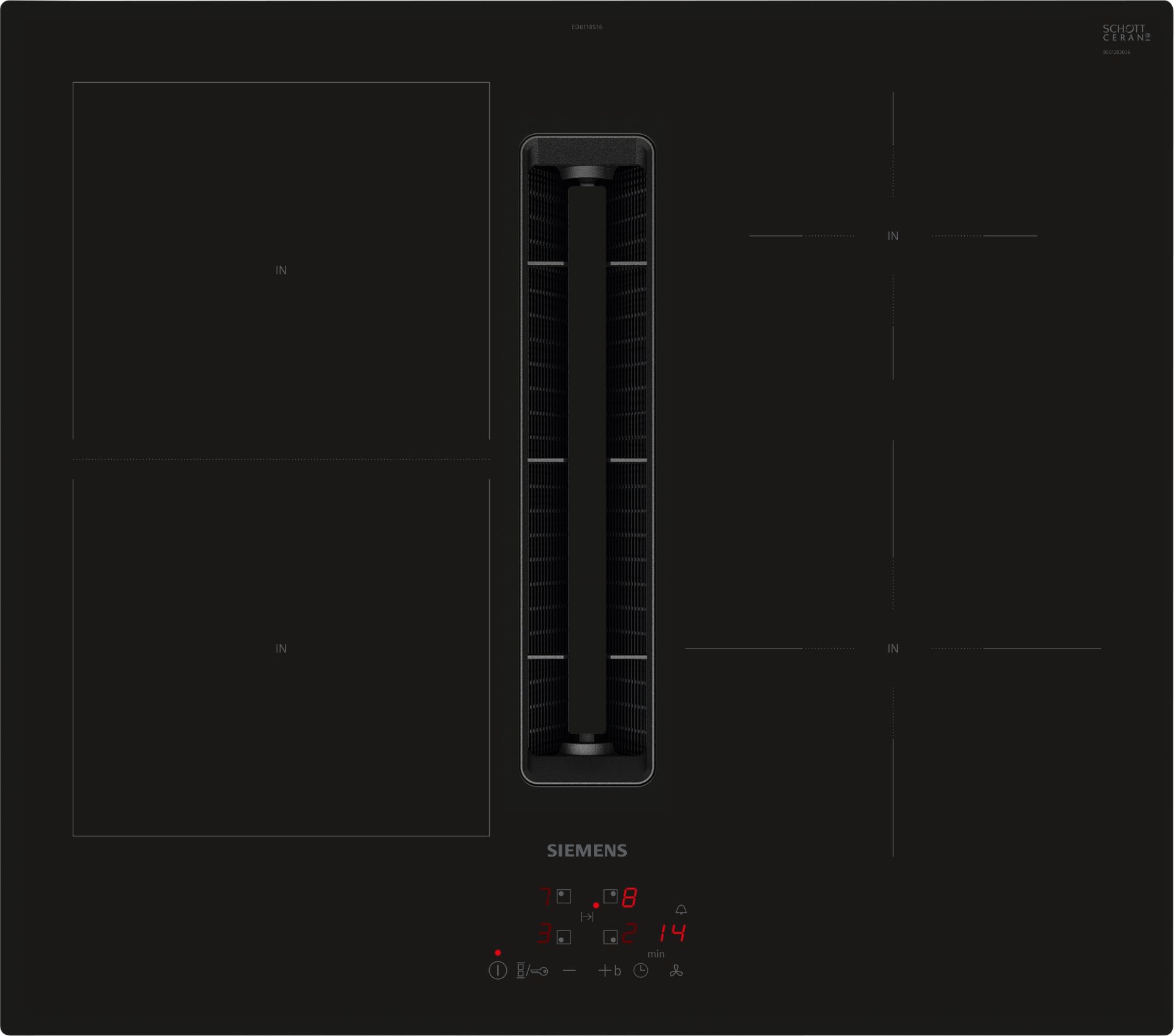 Lieferumfang | Installationszubehör für die ungeführte Umluft, darunter vier cleanAir-Geruchsfilter und ein Teleskop-Schiebeelement, sind im Lieferumfang des Kochfeldes enthalten. Das mitgelieferte Zubehör ermöglicht eine einfache und schnelle Installation und ist in allen Arbeitsplattentiefen ≥60 cm planbar. |