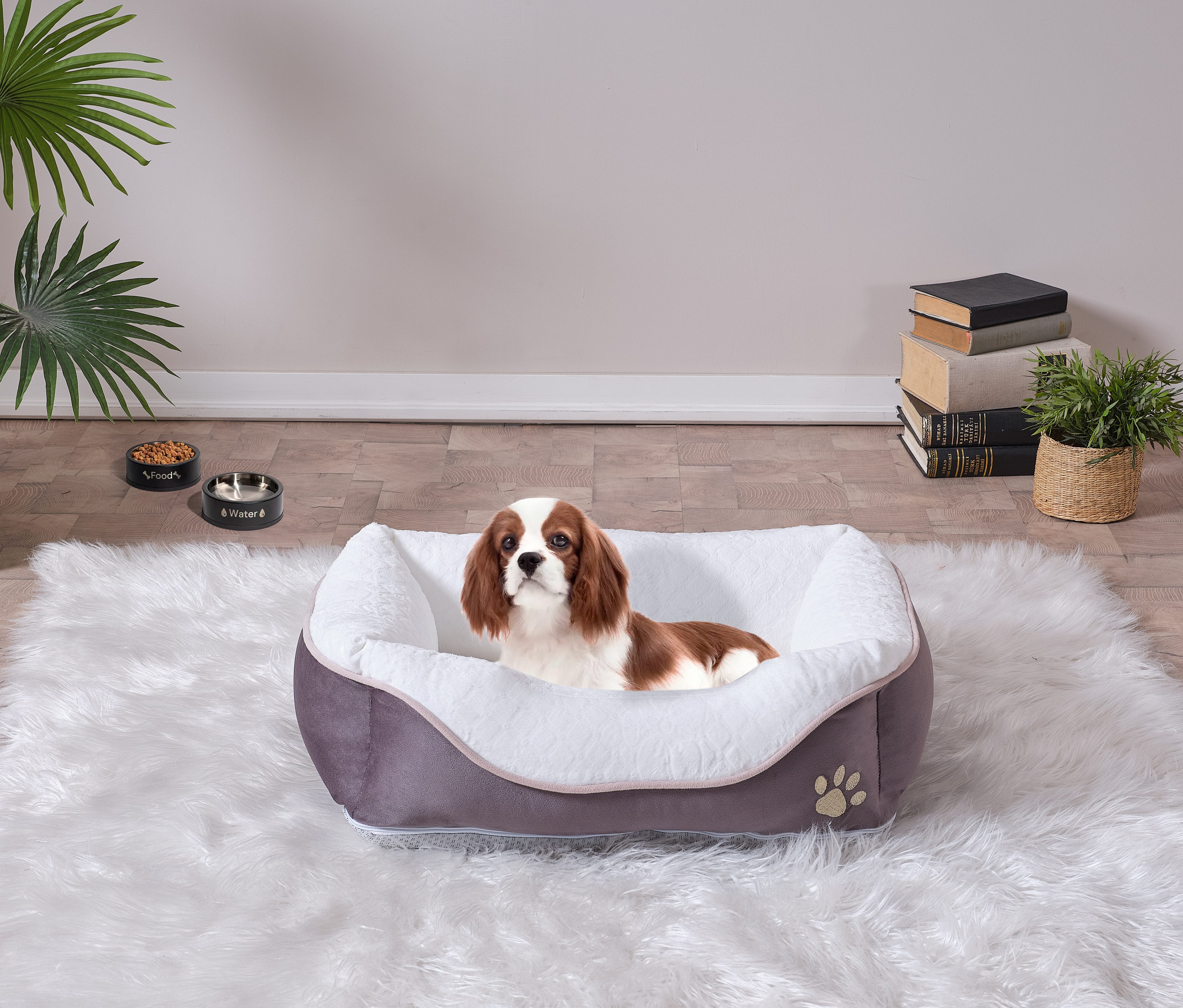 Materialzusammensetzung | Bezug innen: 100 % Microvelours & Plüschstoff, Bezug außen: 100 % Polyester, Füllung Kissen: 100 % Polyester, Füllung Bett: 100 % Weichschaum (Softschaum) |