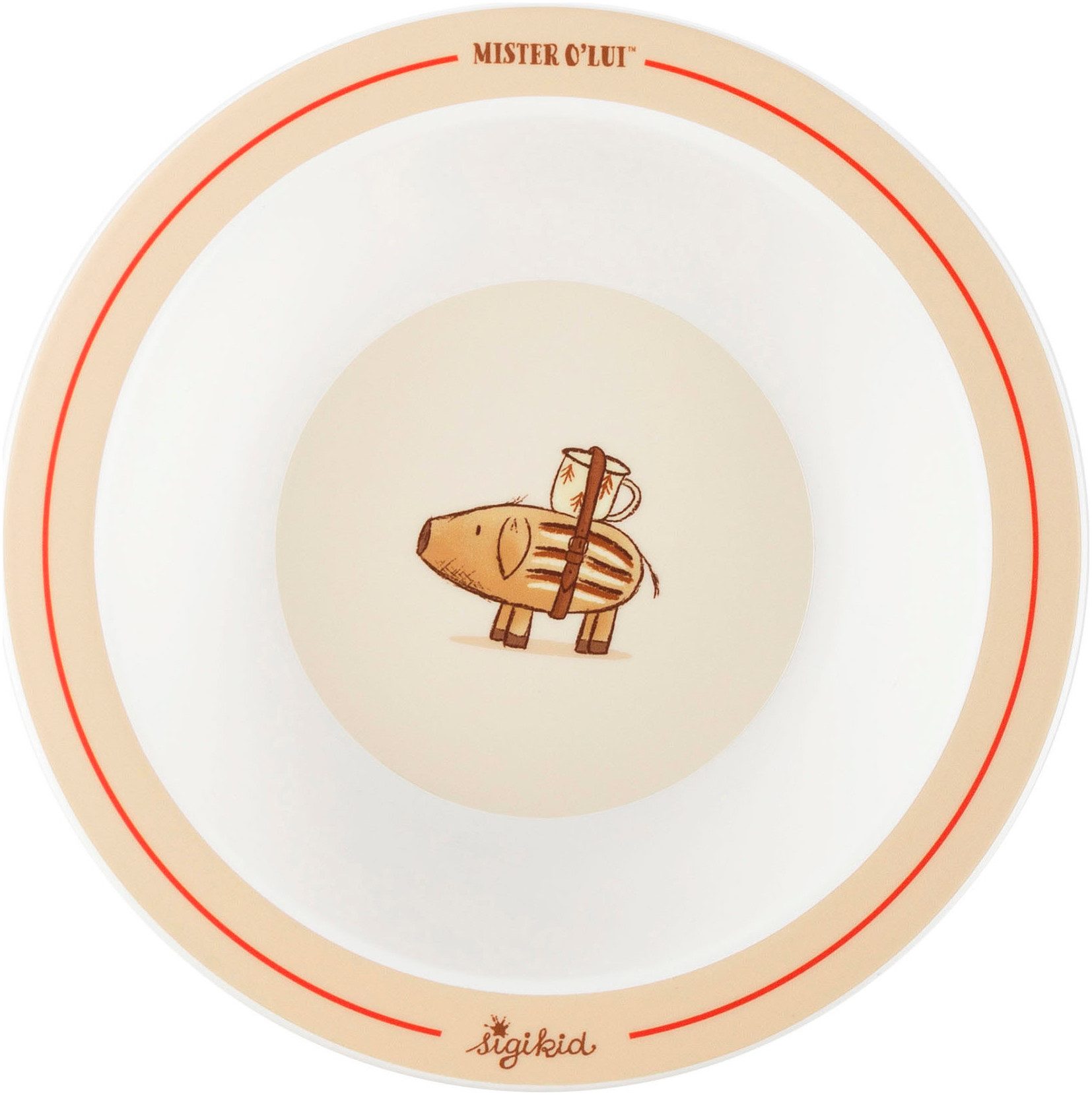 Mister O‘Lui – der außergewöhnliche Biberbär und seine Freunde bringen gute Laune auf jeden Tisch. Die schöne Kinderschüssel in warmen Beigetönen ist aufgrund ihres liebevollen und kindgerechten Designs bei kleinen Mädchen und Jungen gleichermaßen beliebt. Mit dem süßen Wildschein Rupert im Blick macht das Essen noch mehr Freude. Empfohlen wird die Schüssel für Kinder von 2 bis 8 Jahren. Mit einem Durchmesser von 15,5 cm ist sie gut geeignet für das Müsli am Morgen, eine Suppe am Mittag, einen Snack am Nachmittag oder den Brei am Abend. sigikid legt besonderen Wert auf ausgesuchte Materialien und durchdachtes Design. Der Silikonring am Boden der Schale macht das Gefäß rutschfest und sorgt somit für guten Halt auf dem Tisch – perfekt für selbständige Mahlzeiten kleiner Kinder. Zu der Geschirr-Serie „Mister O’Lui“ gehören ebenso Tassen, Teller und ein Besteck-Set im passenden Dekor. Das Schälchen ist nicht nur praktisch, sondern aufgrund der Materialbeschaffenheit auch sicher und sehr langlebig. Es besteht zu 100% aus rPET. Dieses Material wird direkt aus Kunststoffen/PET recycelt, welche in der Industrie bei der Produktion anfallen. So möchten wir qualitativ hochwertiges Recycling und Kreislaufwirtschaft fördern. Das Material ist sehr robust, aber nicht komplett unzerbrechlich. Die Schüssel ist für die Reinigung in der Spülmaschine und für die Verwendung in der Mikrowelle geeignet – bitte hierzu unsere Gebrauchsanleitung beachten. Der Silikonring im Boden kann zur gründlichen Reinigung entnommen werden. Das Geschirr ist selbstverständlich frei von Weichmachern. Um die Sicherheit unserer Produkte zu gewährleisten, werden von akkreditierten Prüfinstituten regelmäßig Prüfungen gemäß dem aktuell geltenden (europäischen) Recht durchgeführt. Die Marke sigikid steht für kindgerechte Produkte, die Emotionen wecken und Eltern und Kindern gleichermaßen ein gutes Gefühl vermitteln. Seit über 50 Jahren folgt sigikid einem klaren Leitsatz: FIRST CLASS FOR KIDS! Wir machen die Welt von Familien von Anfang an kuscheliger und bunter.