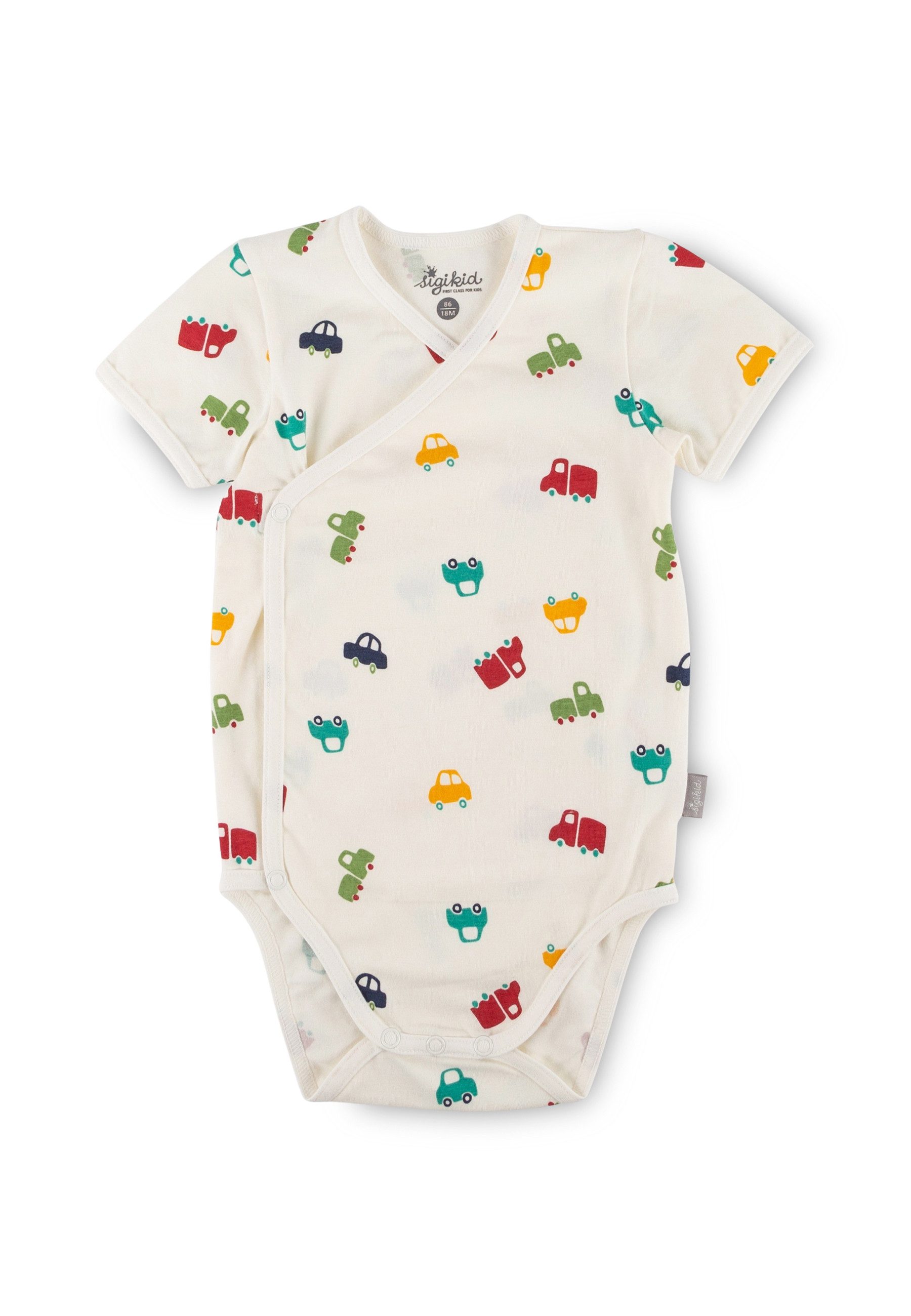 Hochwertige Bio-Baumwoll-Qualität mit hohem Tragekomfort, ideal für Babys Zauberhafte Babymode mit erstklassiger Verarbeitung und exklusivem Design Qualität: Singlejersey 190 g/m² Weiß mit bunten Autos bedruckt Wickelform mit seitlich zwei Druckknöpfchen Drei Druckknöpfchen im Schritt sigikid Logo Label in der Seitennaht Все Stoffe unseres Baby Bodys sind für das Label Textiles Vertrauen Oeko-Tex®-Standard 100 zertifiziert