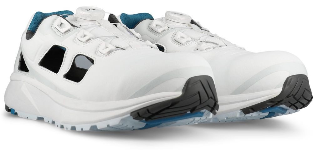 Leichter Sicherheitsschuh mit Öffnungen im Obermaterial für erhöhte Belüftung.?Der Schuh wurde 2022 nach den neuen Standards zertifiziert und verfügt über das BOA® Fit System. Ideal für Personal in der Pharma- und Lebensmittelindustrie. Das Obermaterial besteht aus wasserabweisender Mikrofaser, wodurch sich der Schuh in Kombination mit einem glatten Design leicht abwischen lässt.?Verträgt Abwischen mit Ethanol. Die leichte Zehenschutzkappe aus Aluminium schützt die Zehen vor schweren herabfallenden Gegenständen. Die Laufsohle aus Gummi sorgt für einen guten Bodenkontakt und ist besonders rutschhemmend.?Die Zwischensohle besteht aus weichem, stoßdämpfendem EVA-Schaum (SIKA Aerosol™ Foam), der für einen leichten, komfortablen und flexiblen Schuh sorgt. Die atmungsaktive Einlegesohle ist stoßabsorbierend und besteht unter anderem aus recyceltem PU-Schaum, bei dem Schaumreste aus der Produktion der Einlegesohlen verwendet werden.?PVC-frei und ESD-zugelassen