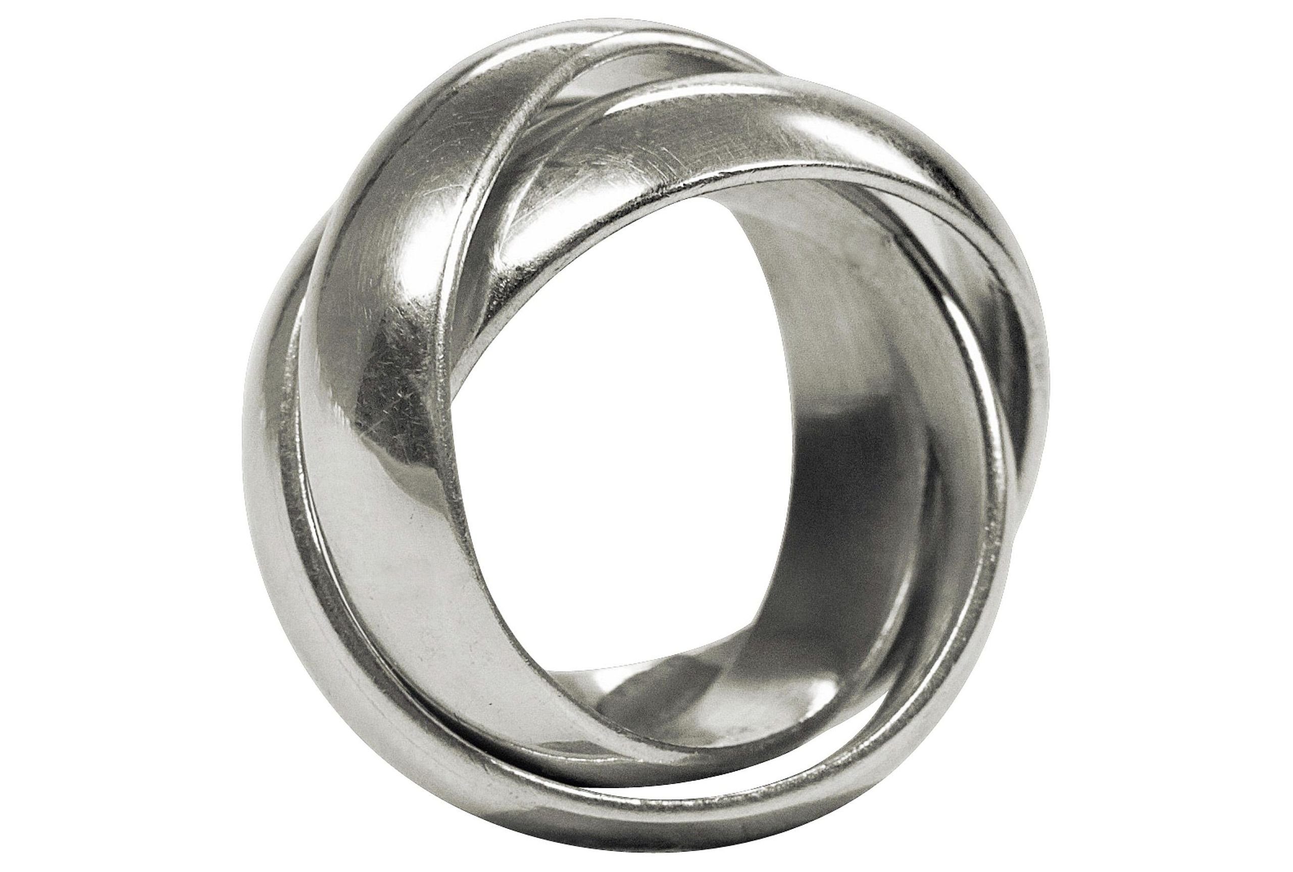 Dieser klassische Dreifach-Ring aus 925 Sterling Silber überzeugt durch seine schlichte, aber extravagante Form. Die drei ineinander verschlungenen Ringe haben eine glänzend polierte Oberfläche. Dank der sanft abgerundeten Kanten liegt der Ring bequem am Finger und sorgt für maximalen Komfort, besonders wenn die Ringe übereinander liegen.