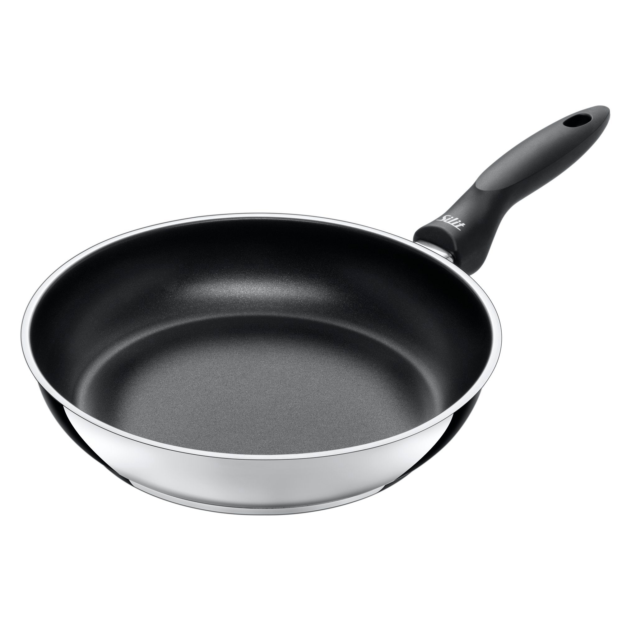 Die Antihaft-Pfanne Domus bringt Zweckmäßigkeit, Robustheit und Optik auf einen Nenner und kombiniert das bewährte Antihaft-System Silitan mit einem formvollendeten Pfannenkörper aus Edelstahl Rostfrei 18/10. Versehen mit einem ergonomischen Griff in außergewöhnlichem Design hält jetzt auch der anspruchsvollste Koch die perfekte Union aus Schönheit und Funktionalität in den Händen. Schicht für Schicht vom Всеrfeinsten: So könnte die Antihaft-Pfanne Domus charakterisiert werden. Der extrastarke Kapselboden ist ideal für alle Herdarten inklusive Induktion. Bedeckt wird er von einer titanhaltigen Hartgrundschicht sowie der 3-fach Antihaftversiegelung Silitan.