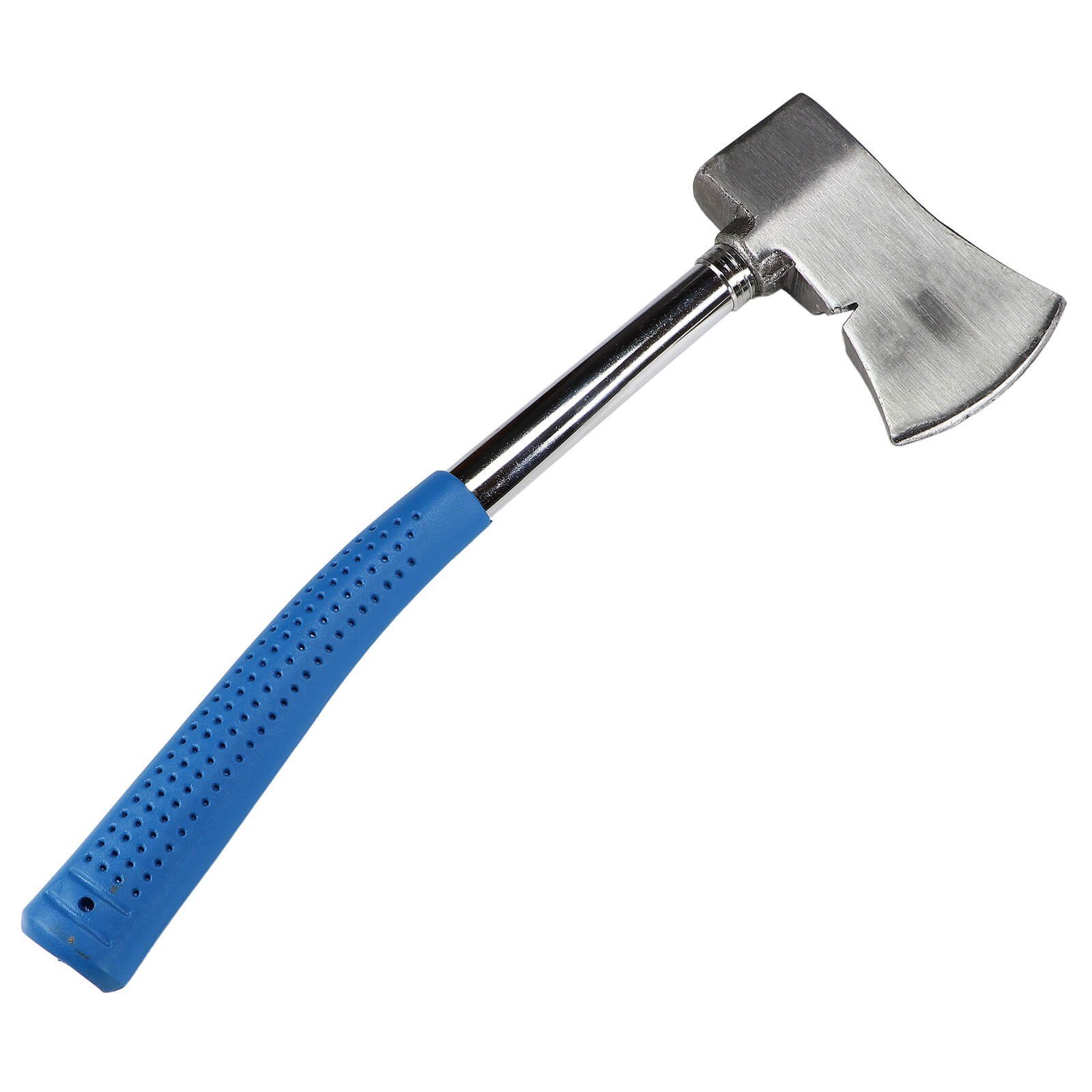 Das Handbeil ist ausgestattet mit einem verchromten Stahlrohrstiel mit einem Gummierten Griff für ordentlich Grip. Das Handbeil hat einen Beilkopf aus Schmiedestahl, ist poliert und lackiert.