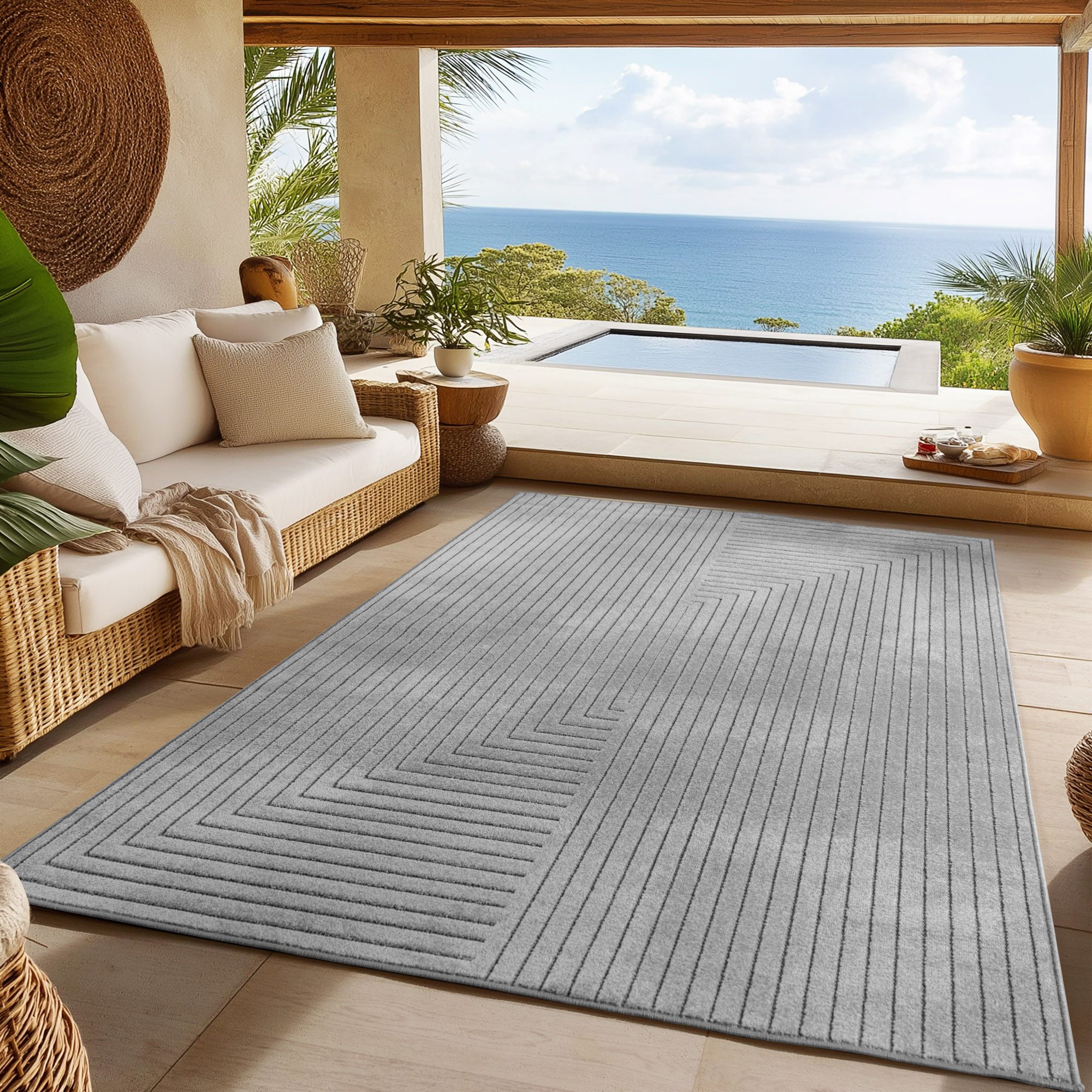 Hinweis) | SIMPEX Outdoor Teppich, Wetterfest & UV-beständig, ideal für Küche, Balkon, Terrasse, Garten auch Wohnzimmer und Esszimmer, Einfarbiges Design mit Bordüre, Leicht zu Reinigen |