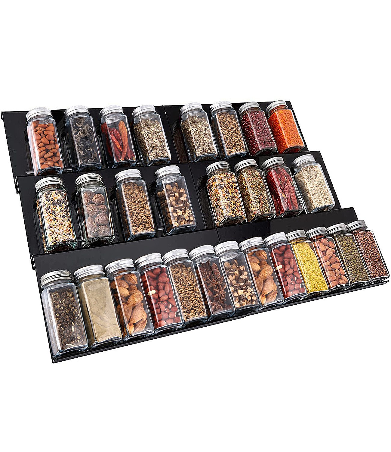 Ausziehbar von 30 cm bis 60 cm. Die Gewürzschublade besteht aus 6 einzelnen Einsätzen. Sie können das Gewürzregal auf die gewünschte Breite erweitern, je nachdem, wie viele Gewürze Sie haben. Die Gewürzschublade ist für Schubladen unterschiedlicher Breite geeignet.