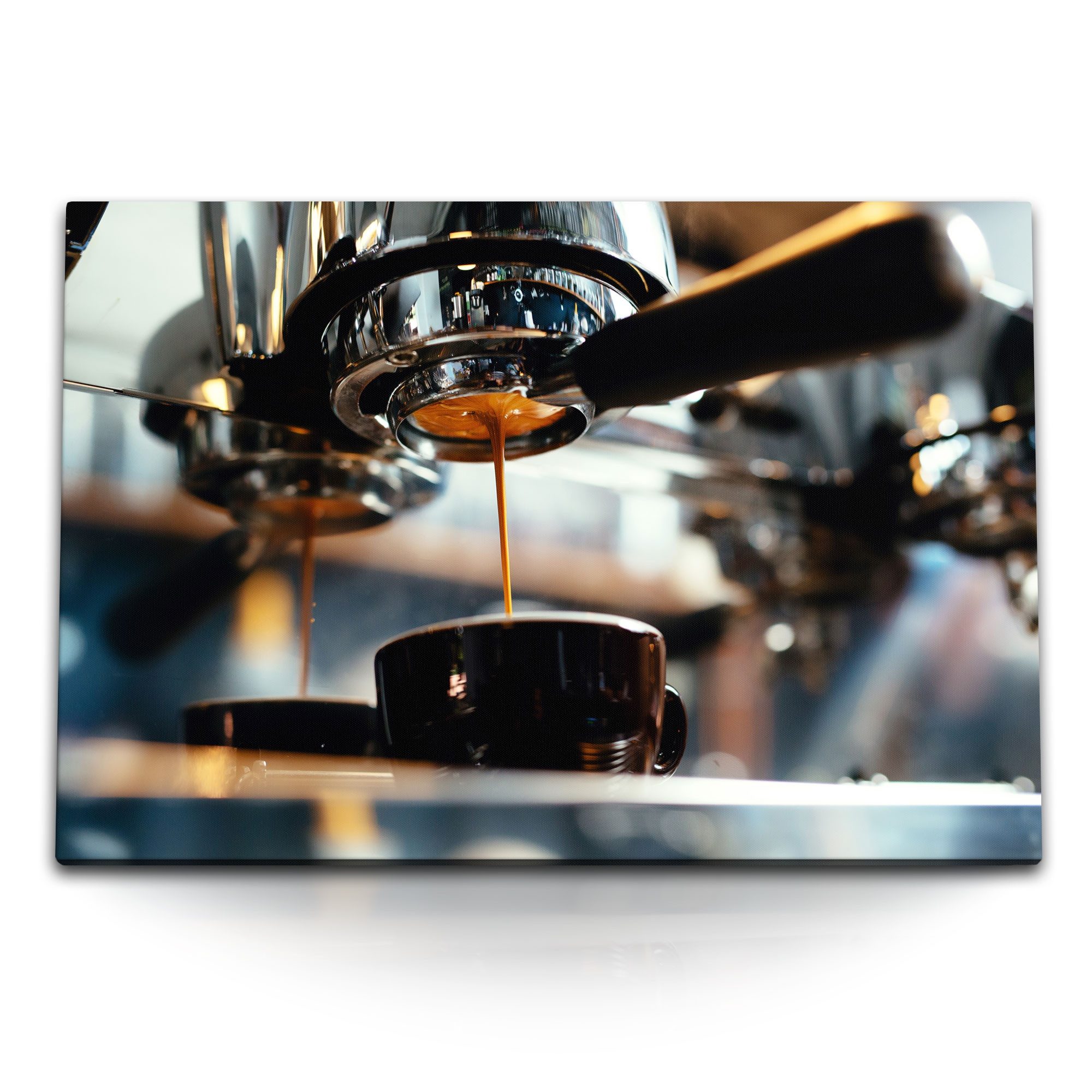 Leinwandbild 120x80cm Barista Kaffee Kaffeebar Kaffeemaschine Vintage - Dieses moderne und exklusive Wandbild ist ein echter Blickfang für Ihr Wohnzimmer, Schlafzimmer, Küche, Büro, Lounge, Garten oder anderen Einrichtungen. Dieser Fine Art Print wird auf hochwertiger Leinwand gedruckt und auf einen 2 cm starken Holzkeilrahmen gespannt. Gedruckt wird mit den besten Techniken auf dem Markt. Die Bilder bestechen durch eine sehr gute Farbqualität und Brillanz. Jedes Leinwandbild wird eigens in unserem Hause und individuell in Handarbeit (Made in Germany) angefertigt, somit ist ein hohes Maß an Qualität gewährleistet. Für deutsche Qualitätsware zum bestmöglichen Preis sind Sie bei uns genau richtig. Unsere Kunstdrucke eignen sich ideal als Geschenk zu Weihnachten, Ostern, Geburtstag, Hochzeit, Muttertag, Vatertag und andere Anlässen, für Freunde und Familie, egal ob alt oder jung. Damit auch Sie schöner Wohnen mit qualitativ hochwertigen Bildern auf echter Leinwand und Keilrahmen. Einfach auspacken, aufhängen und sich daran erfreuen. TIPP: Diese Dekoration ergänzt wunderbar Möbel wie z.B. Betten, Couch, Sofa, Tisch, Schrank, Küchen usw. gespannt. Traumhafte Accessoires für Ihr Zuhause.