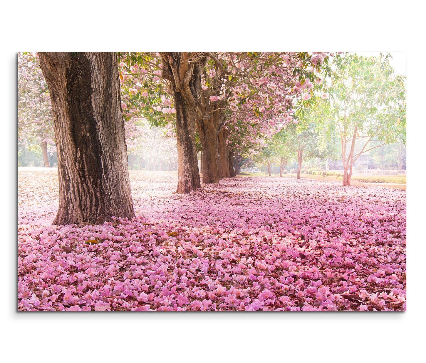 Leinwandbild 120x80cm Wandbild Bäume Blüten Weg Sonnenlicht
