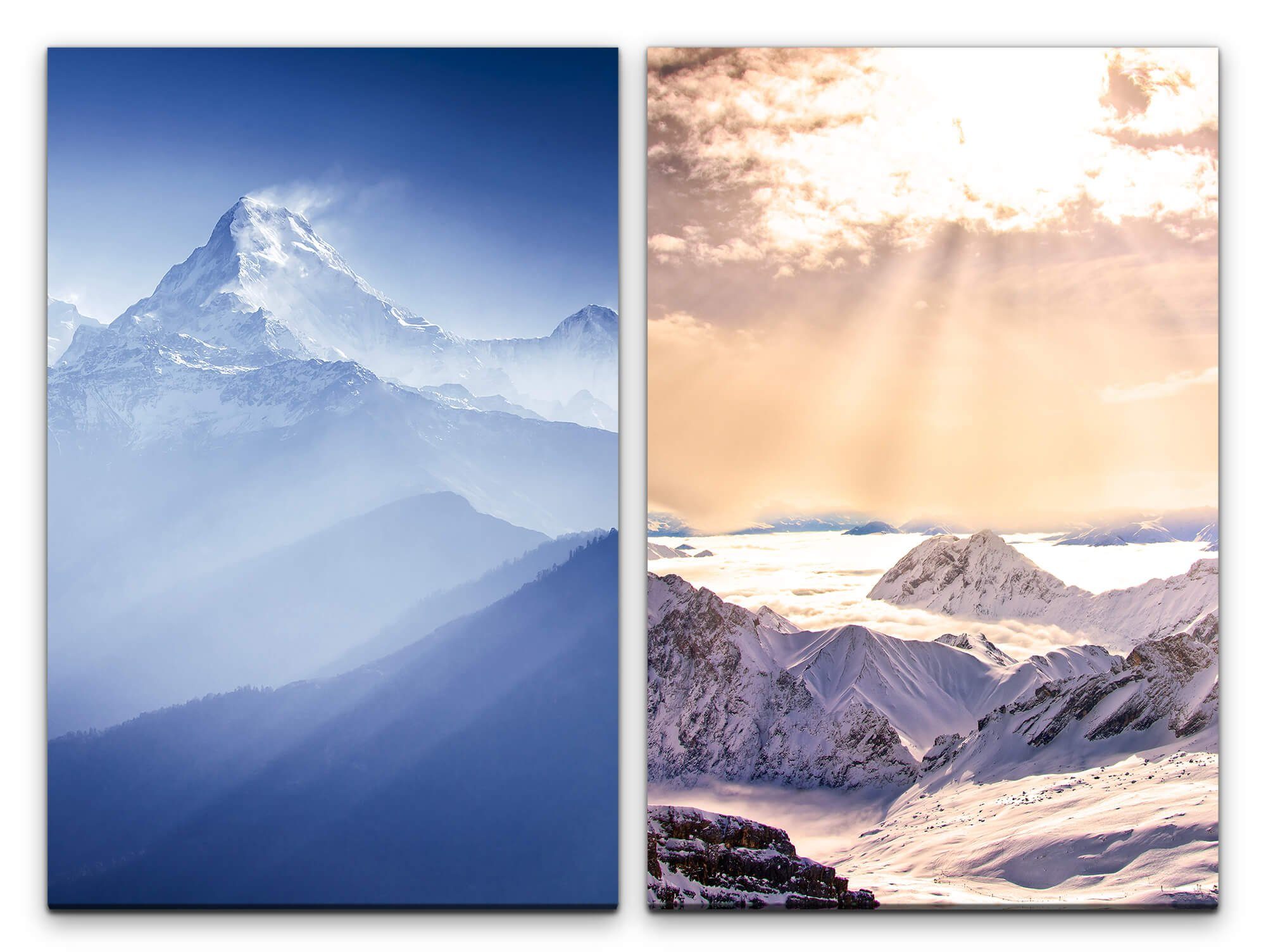 Leinwandbild 2 Bilder je 60x90cm Berggipfel Schneegipfel Bergkette Himalaya Sonnenstrahlen Schnee Winter