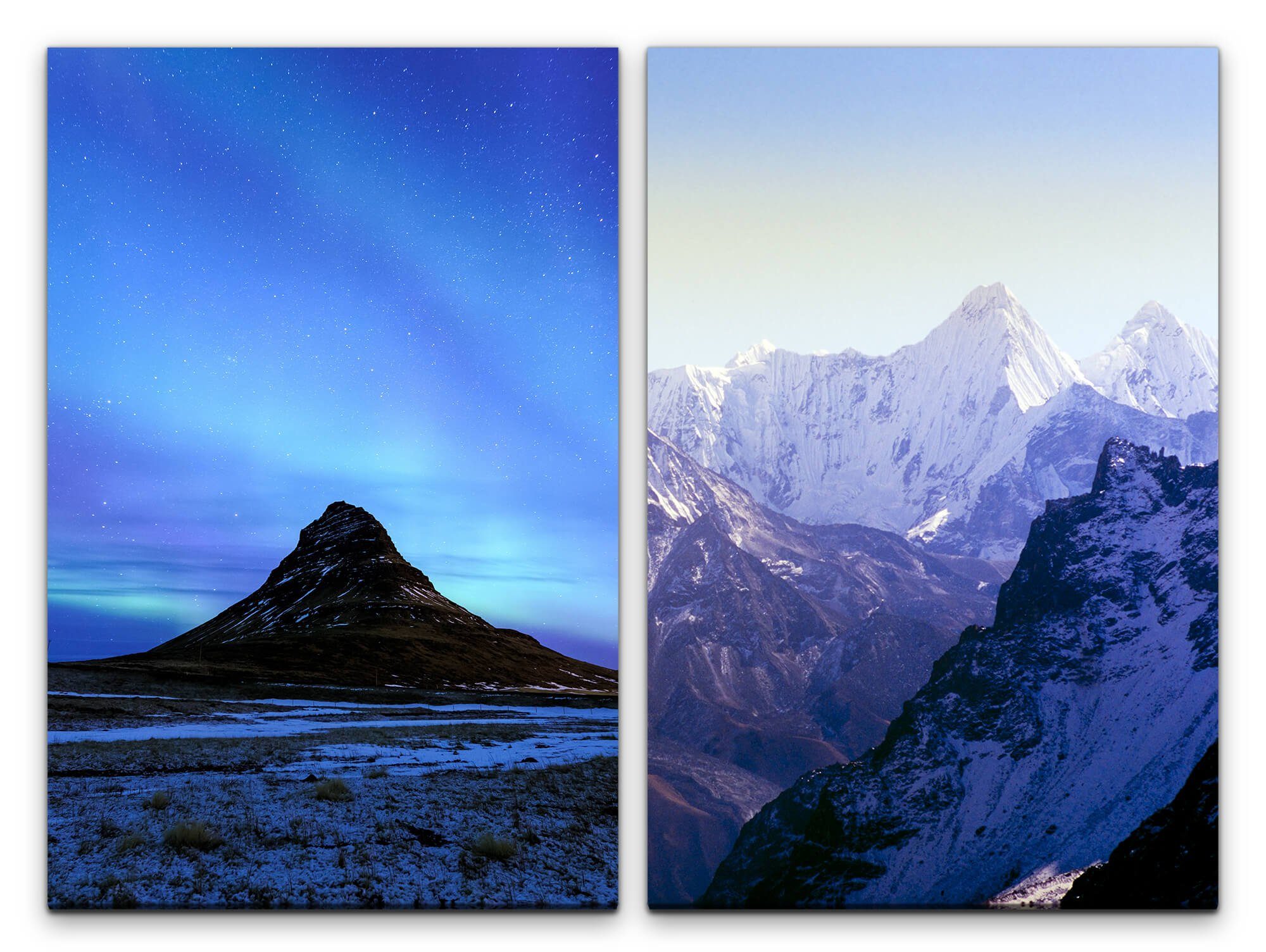 Sinus Art Leinwandbild 2 Bilder je 60x90cm Gebirge Berg Himalaja Polarlichter Schneegipfel Majestätisch Ruhe