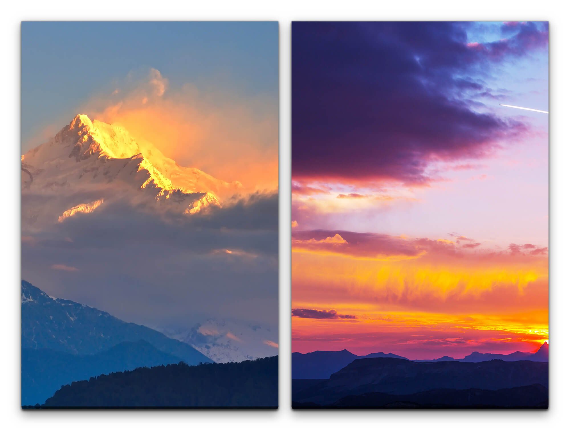 Leinwandbild 2 Bilder je 60x90cm Gebirge Schneegipfel roter Himmel Abenddämmerung Kraftvoll Majestätisch Erhaben