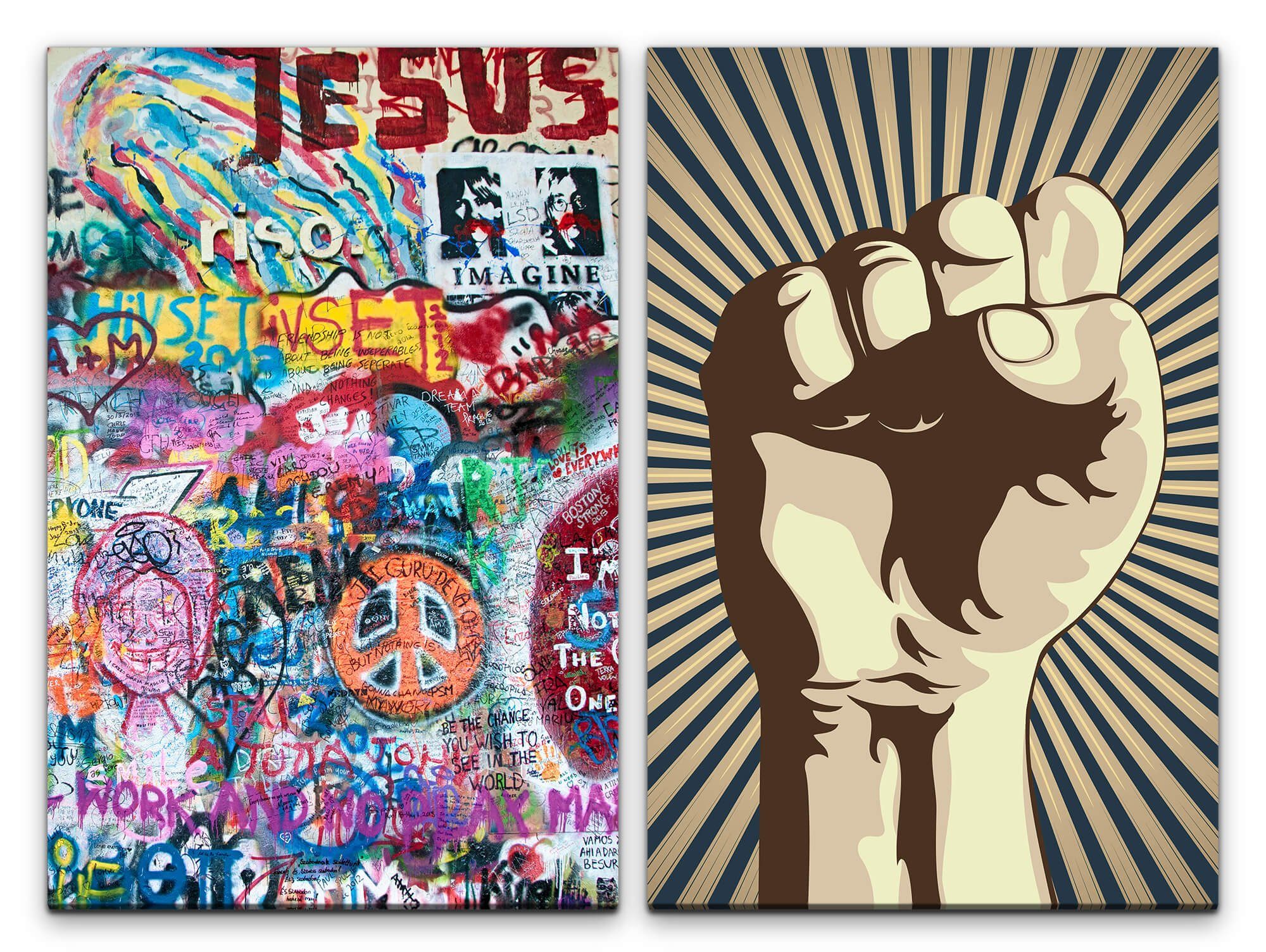 Sinus Art Leinwandbild 2 Bilder je 60x90cm Revolution Demo Widerstand Graffiti StreetArt Wall Wand