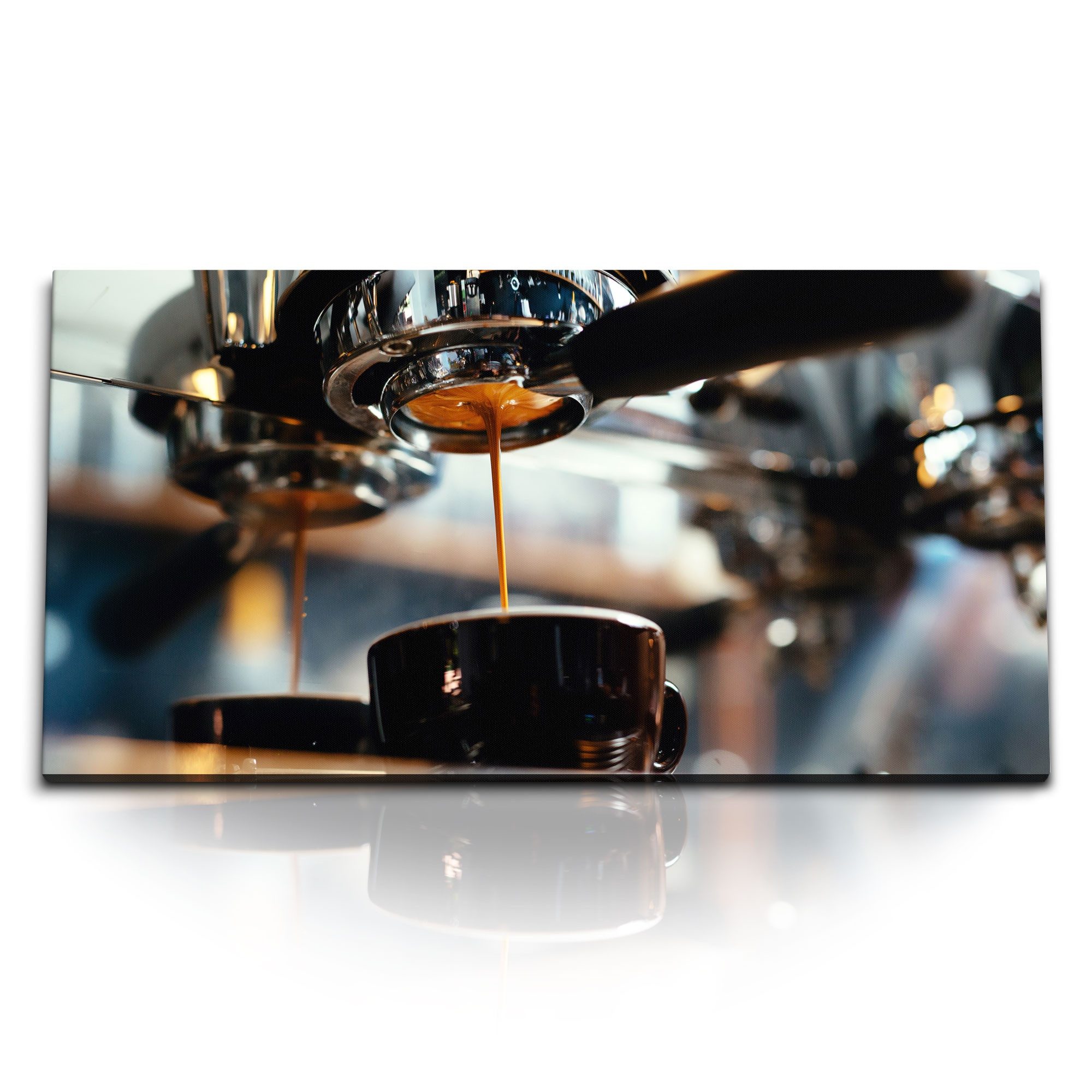 Leinwandbild 120x60cm Barista Kaffee Kaffeebar Kaffeemaschine Vintage - Dieses moderne und exklusive Wandbild ist ein echter Blickfang für Ihr Wohnzimmer, Schlafzimmer, Küche, Büro, Lounge, Garten oder anderen Einrichtungen. Dieser Fine Art Print wird auf hochwertiger Leinwand gedruckt und auf einen 2 cm starken Holzkeilrahmen gespannt. Gedruckt wird mit den besten Techniken auf dem Markt. Die Bilder bestechen durch eine sehr gute Farbqualität und Brillanz. Jedes Leinwandbild wird eigens in unserem Hause und individuell in Handarbeit (Made in Germany) angefertigt, somit ist ein hohes Maß an Qualität gewährleistet. Für deutsche Qualitätsware zum bestmöglichen Preis sind Sie bei uns genau richtig. Unsere Kunstdrucke eignen sich ideal als Geschenk zu Weihnachten, Ostern, Geburtstag, Hochzeit, Muttertag, Vatertag und andere Anlässen, für Freunde und Familie, egal ob alt oder jung. Damit auch Sie schöner Wohnen mit qualitativ hochwertigen Bildern auf echter Leinwand und Keilrahmen. Einfach auspacken, aufhängen und sich daran erfreuen. TIPP: Diese Dekoration ergänzt wunderbar Möbel wie z.B. Betten, Couch, Sofa, Tisch, Schrank, Küchen usw. gespannt. Traumhafte Accessoires für Ihr Zuhause.