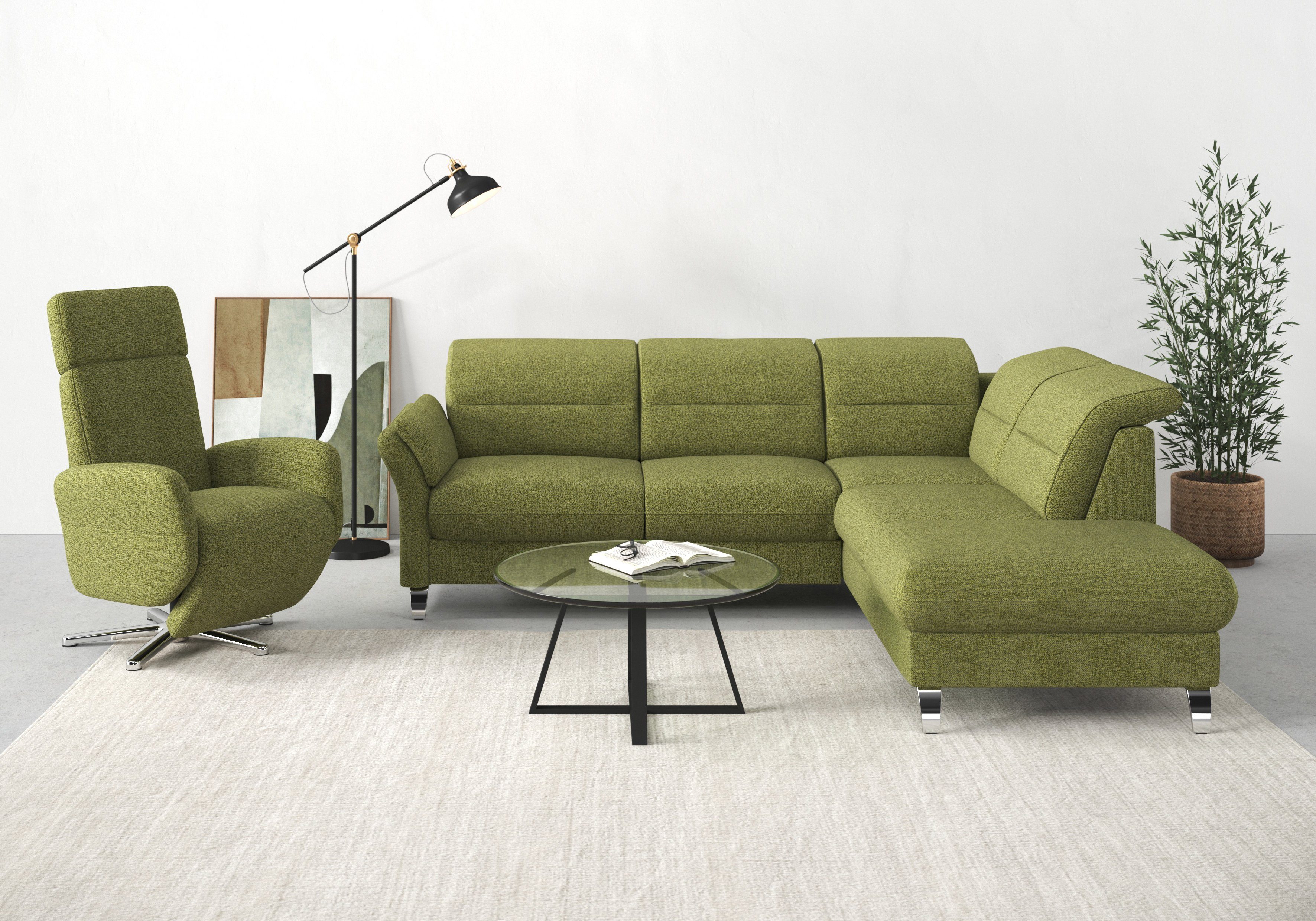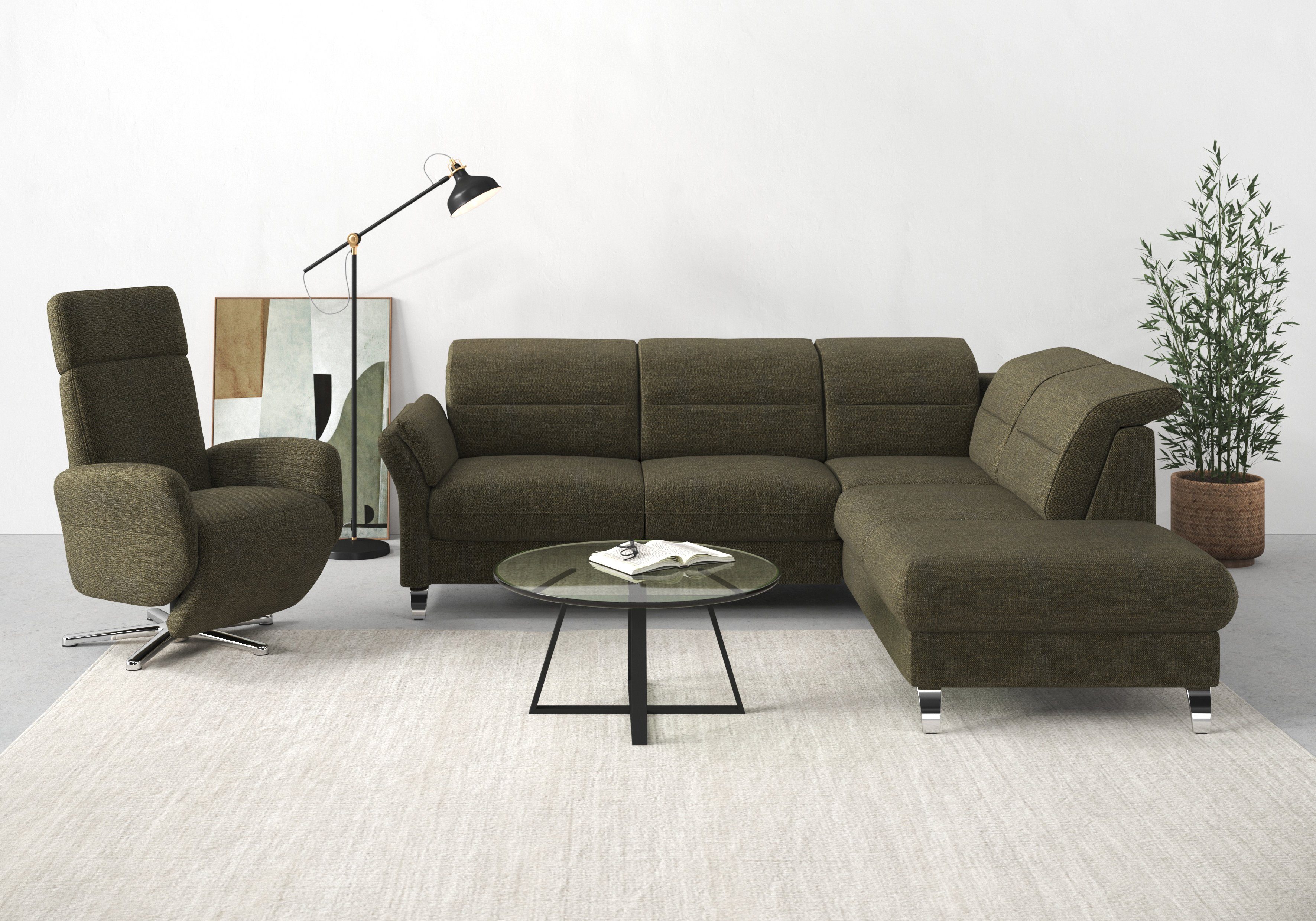 Durch die hochwertige Wellenunterfederung wird die Sitzfläche des Ecksofas »Grenoble L-Form mit Federkern« von sit&more gut gefedert und bleibt dauerhaft elastisch. Von vorne betrachtet ist die Ottomane nach rechts ausgerichtet. Die maximale Belastbarkeit pro Sitzplatz liegt bei einem Gewicht von 110 Kilogramm. Der strukturierte Bezug überzeugt durch seine pflegeleichte und hautsympathische Eigenschaft. Aus Liebe zum Detail wurde dieses Modell von Hand angefertigt.