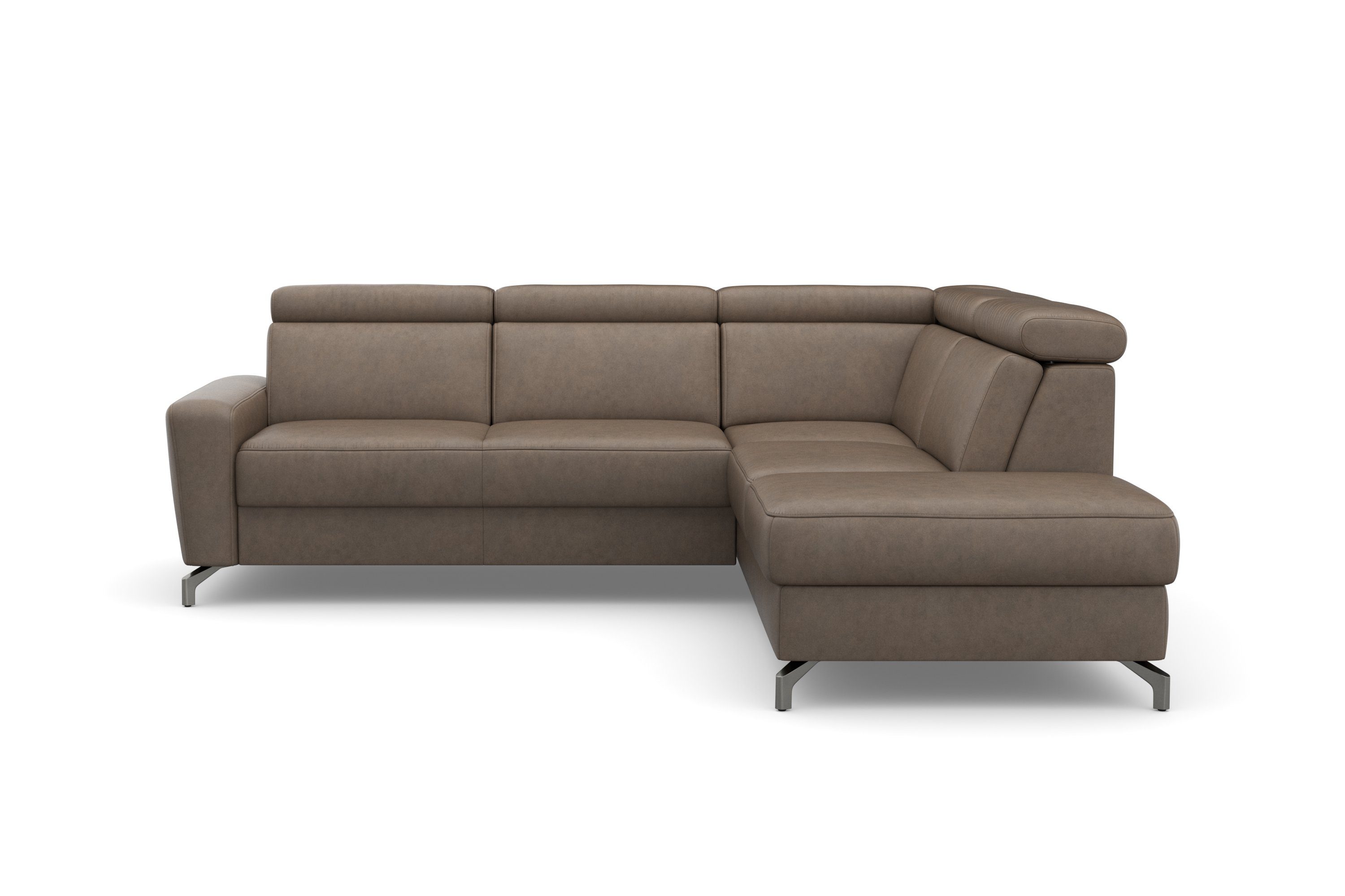 Durch die hochwertige Wellenunterfederung wird die Sitzfläche des Ecksofas »Scarlett L-Form« von sit&more gut gefedert und bleibt dauerhaft elastisch. Das Produkt ist manuell verstellbar und lässt sich so mit wenigen Handgriffen in die gewünschte Position bringen. Von vorne betrachtet ist die Ottomane nach rechts ausgerichtet. Bei etwa 110 Kilogramm liegt die maximale Belastbarkeit pro Sitzplatz. Die Luxus-Microfaser ALTARA NUBUCK® neigt kaum zur Fusselbildung und sorgt für eine softe und glatte Oberfläche mit guten Pflegeeigenschaften. Aus Liebe zum Detail wurde dieses Modell von Hand angefertigt.