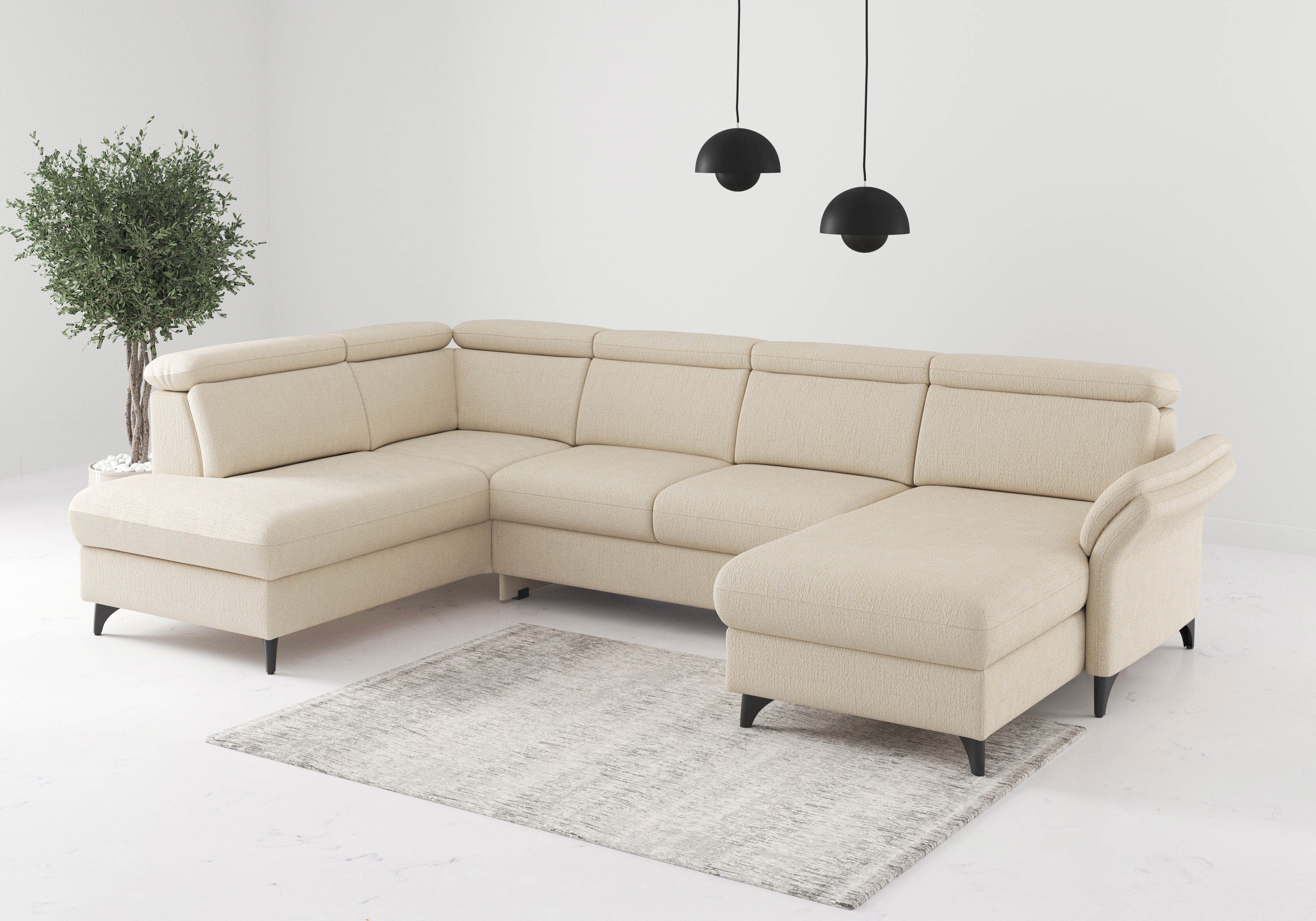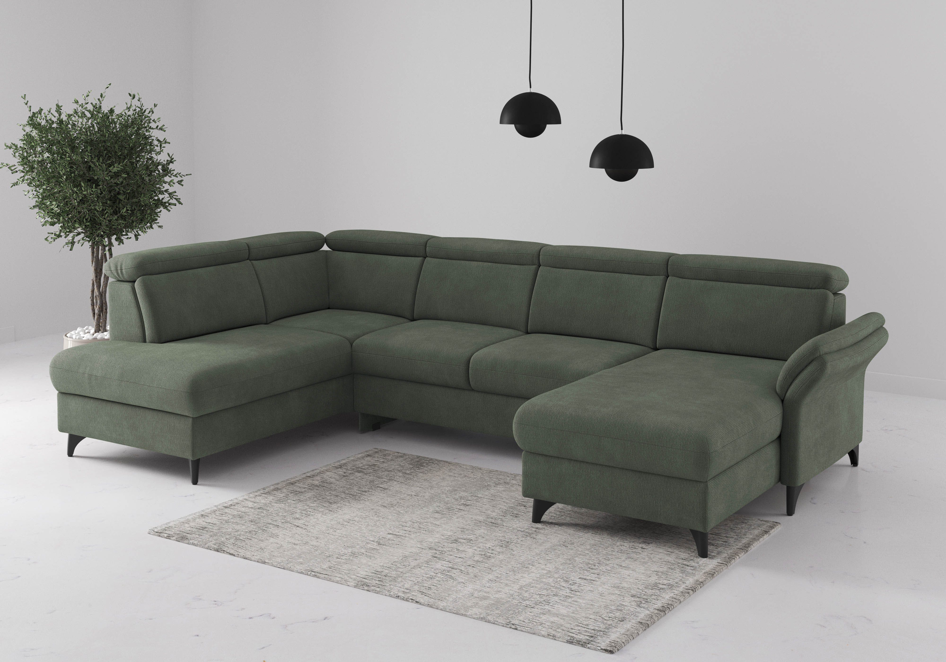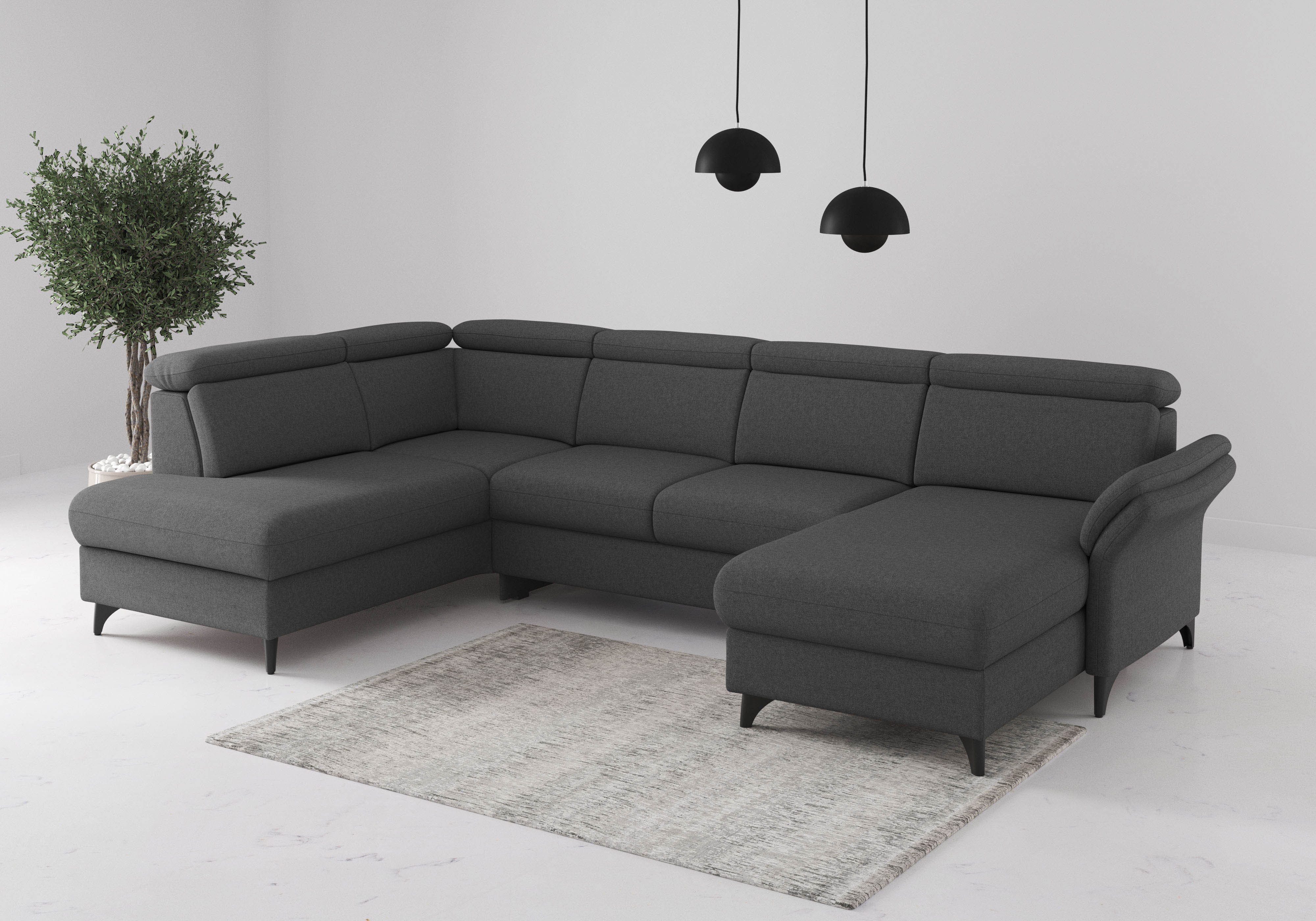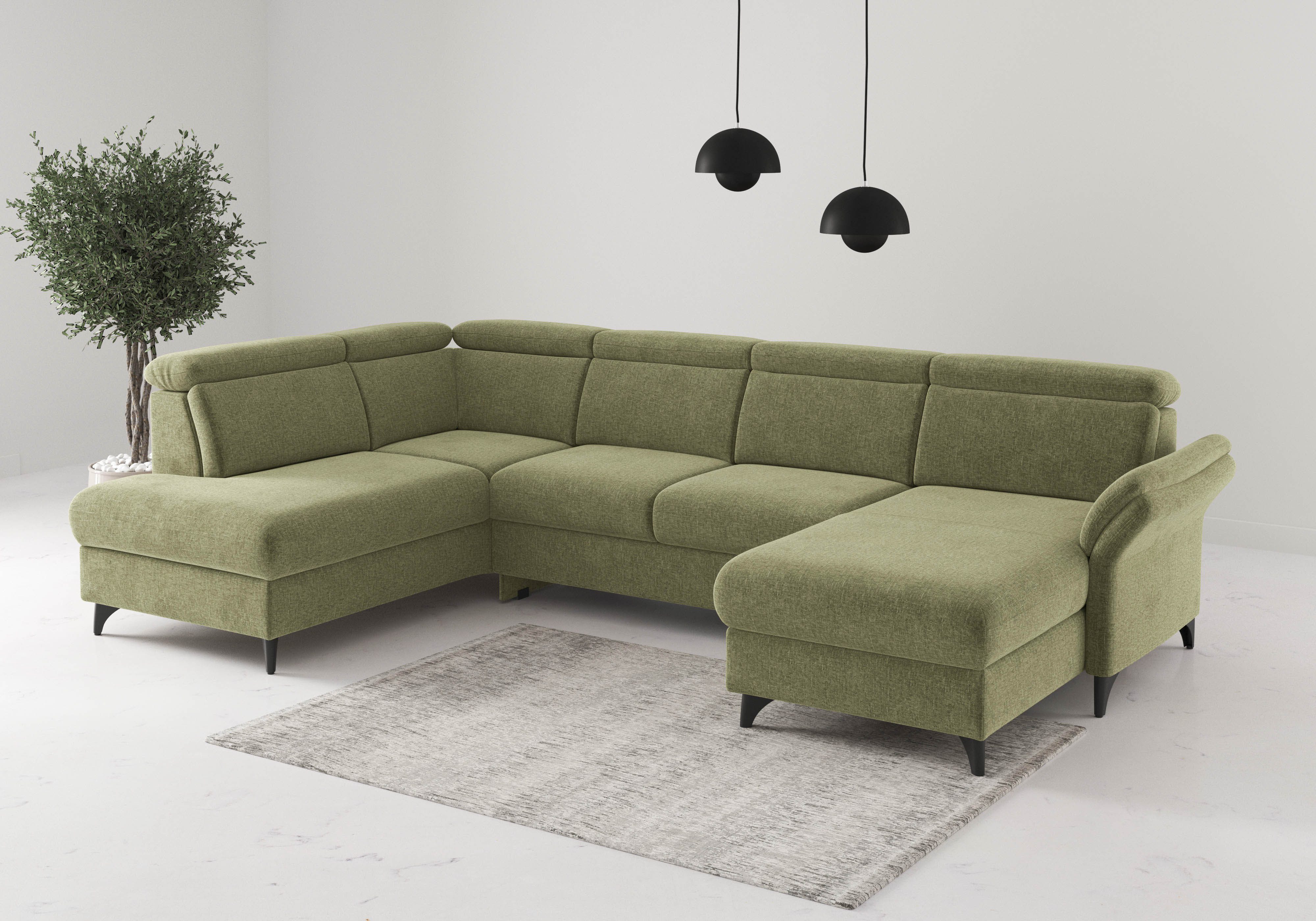 Eine dauerhaft elastische und komfortable Sitzfläche — das bekommst du bei dieser Wohnlandschaft »Glendale« von sit&more, die mit einer hochwertigen Wellenunterfederung ausgestattet ist. Bei der Wohnlandschaft befindet sich die Recamiere, von vorne betrachtet, rechts. Bei etwa 110 Kilogramm liegt die maximale Belastbarkeit pro Sitzplatz. Aus Metall gefertigt sind die mattschwarzen Füße besonders widerstandsfähig und langlebig. Dieses Modell wurde von Hand gefertigt.