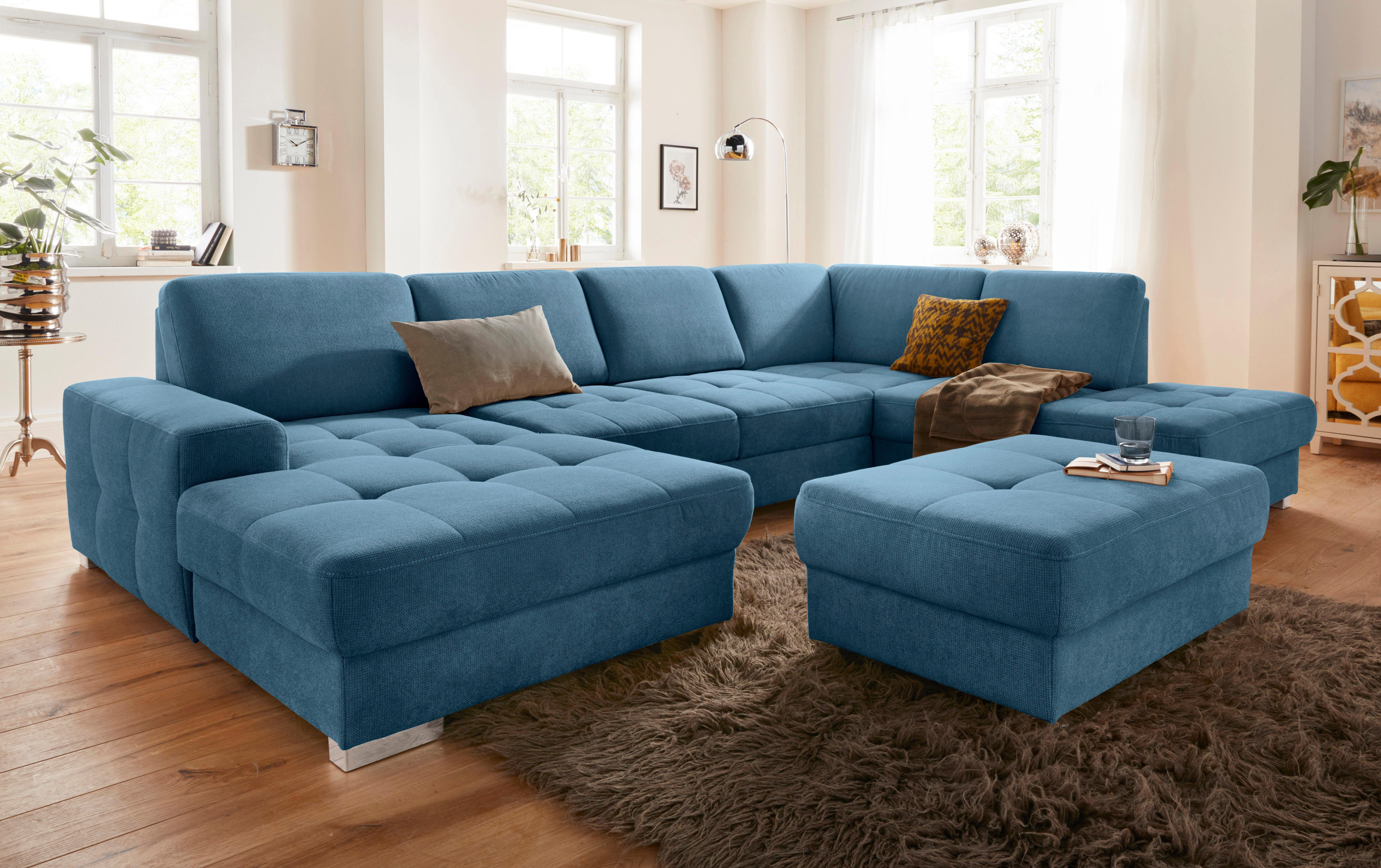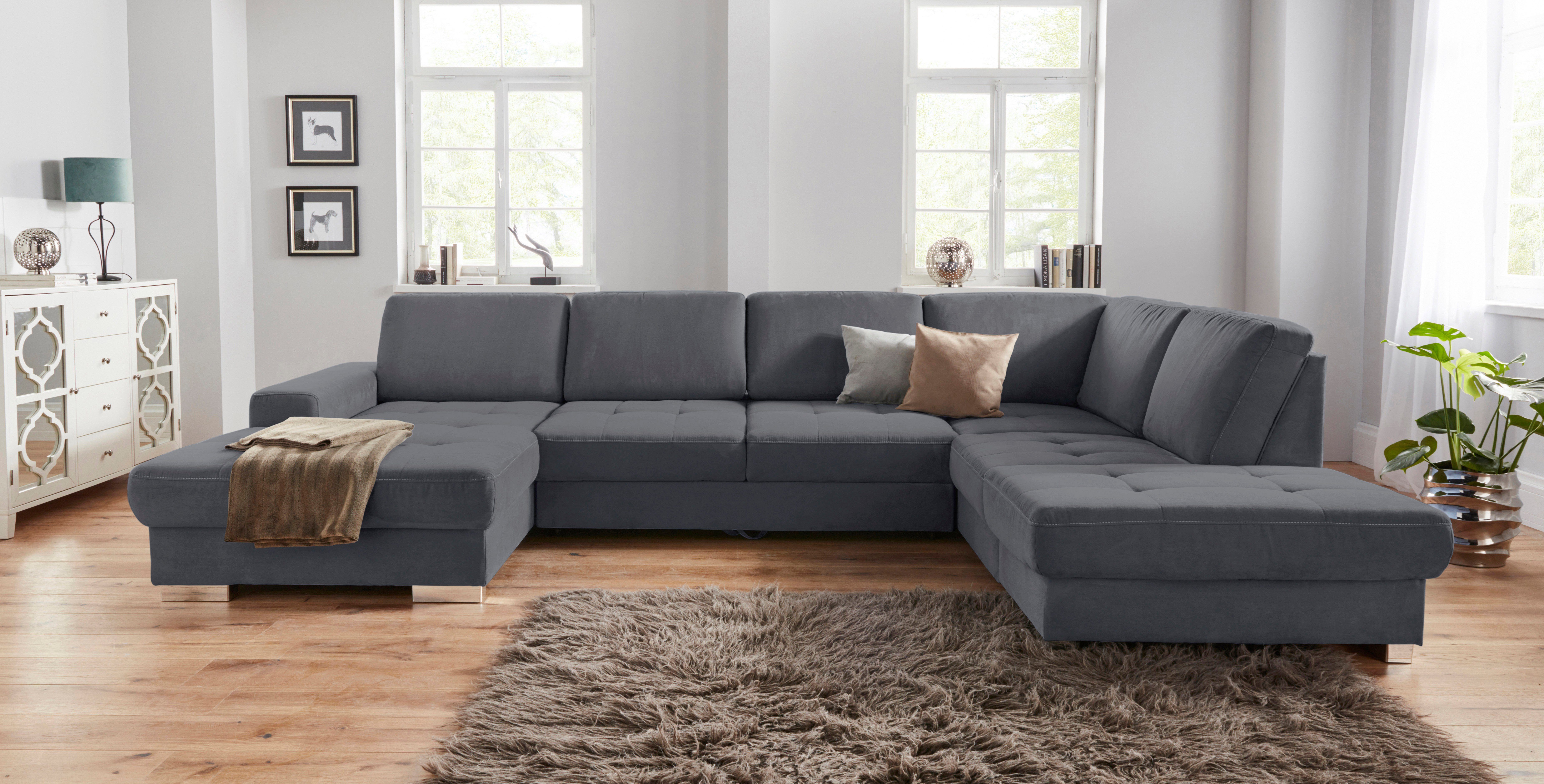 Durch die hochwertige Wellenunterfederung wird die Sitzfläche der Wohnlandschaft »Santorini U-Form« von sit&more gut gefedert und bleibt dauerhaft elastisch. Außerdem kann das Möbelstück ein separates Gästebett ersetzen und somit Platz einsparen, denn sie ist mit einem praktischen Bettkasten versehen. Was dir auch zu Gute kommt, ist die Verstellbarkeit der Sitzfläche, die es ermöglicht, die Sitzhöhe an die Длина ноги anzupassen. Bei der Wohnlandschaft befindet sich die Recamiere, von vorne betrachtet, links. Bei etwa 110 Kilogramm liegt die maximale Belastbarkeit pro Sitzplatz. Die Luxus-Microfaser ALTARA NUBUCK® ist ein strapazierfähiger Stoff, der Belastungen gut stand hält. Die Oberfläche aus feinen Fasern fühlt sich weich und geschmeidig an.