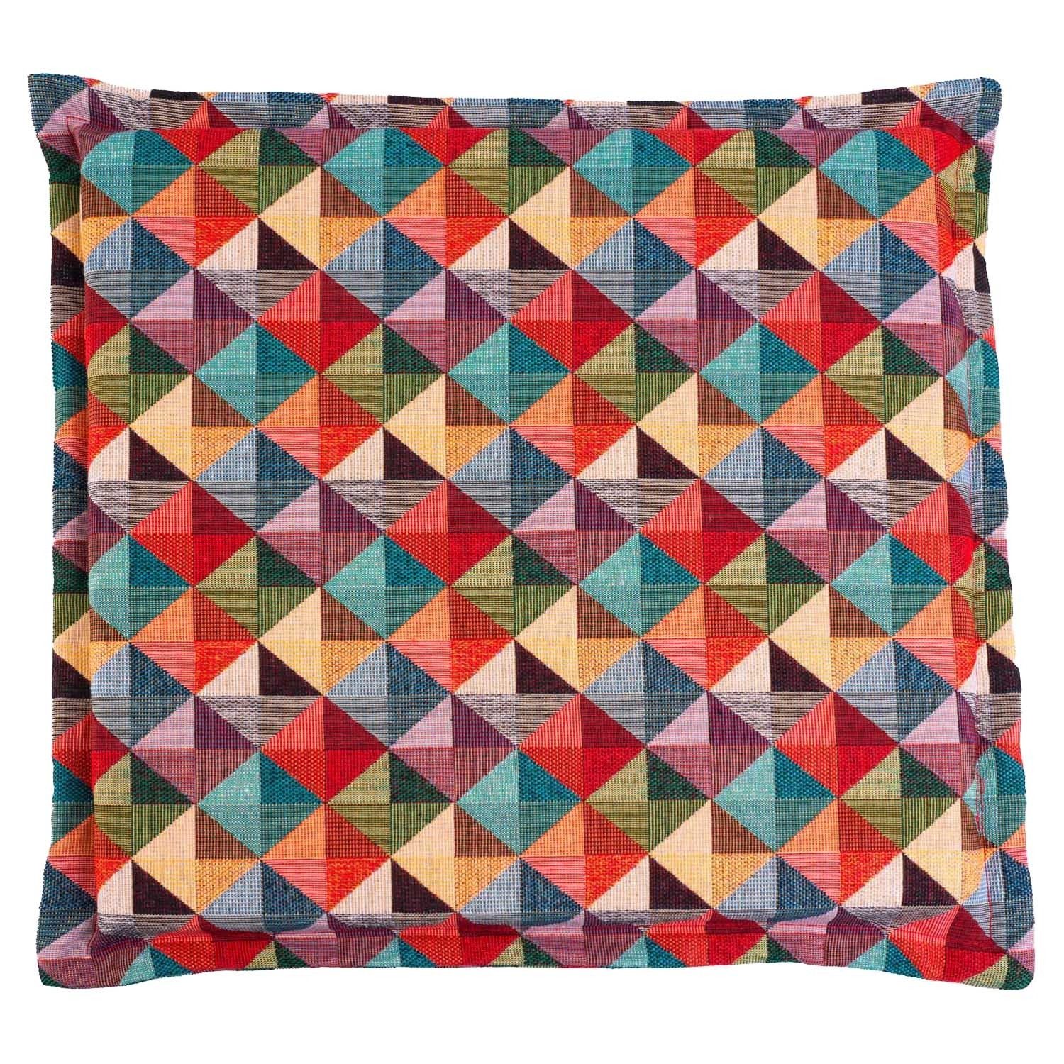Das Sitzkissen TALOS ist ein mehrfarbiges Kissen mit Dreiecksmuster und dekorativem Keder. Es besteht zu 65 % aus Polyester und zu 35 % aus Baumwolle. Mit einer Длина und Breite von jeweils 38 cm und einer Höhe von 3 cm ist es ideal für verschiedene Sitzgelegenheiten geeignet.