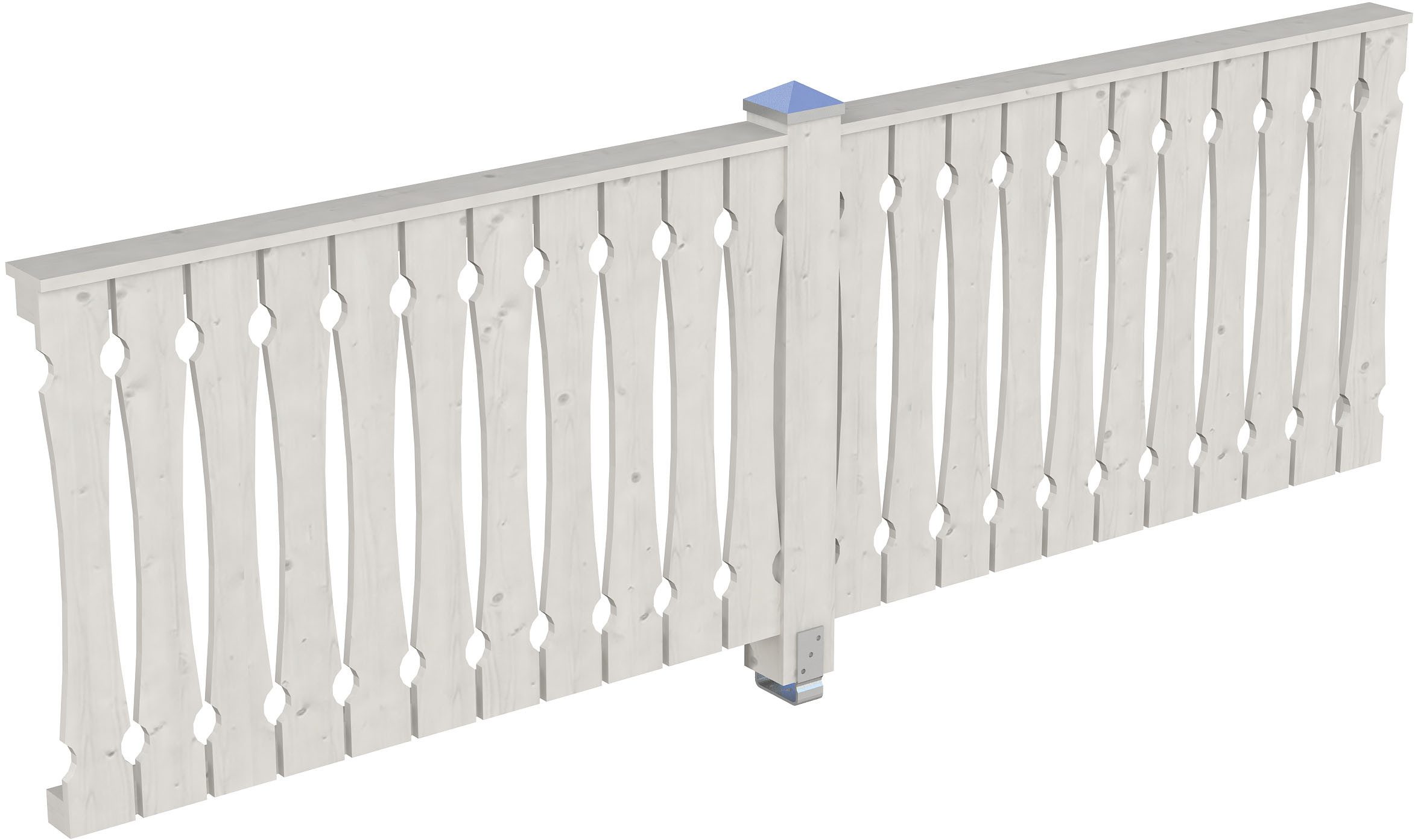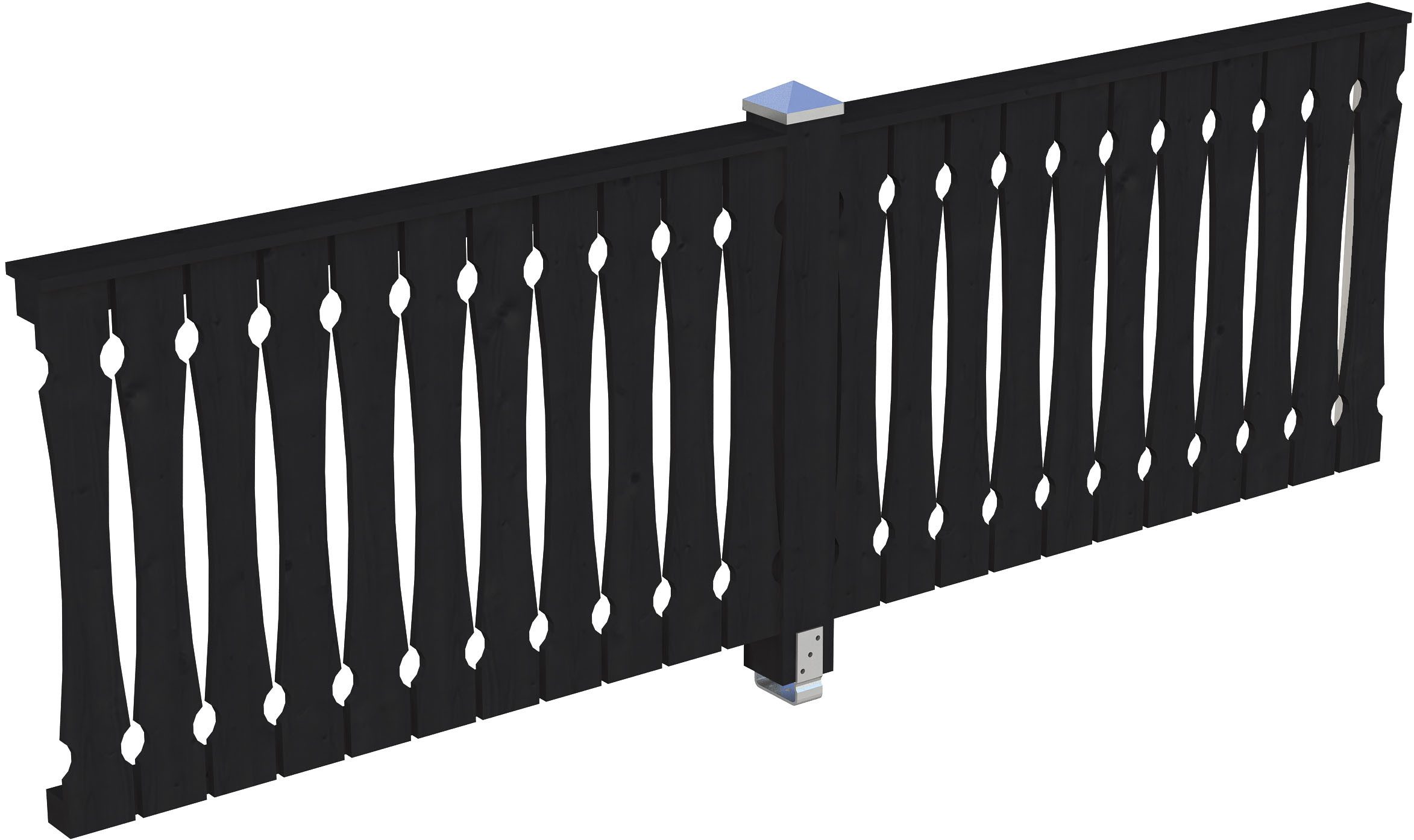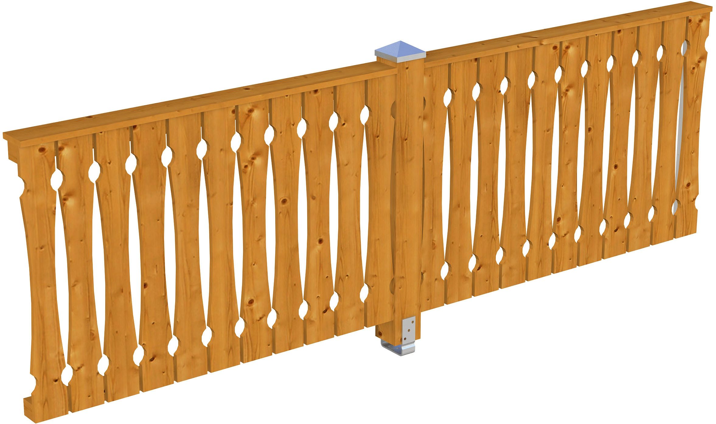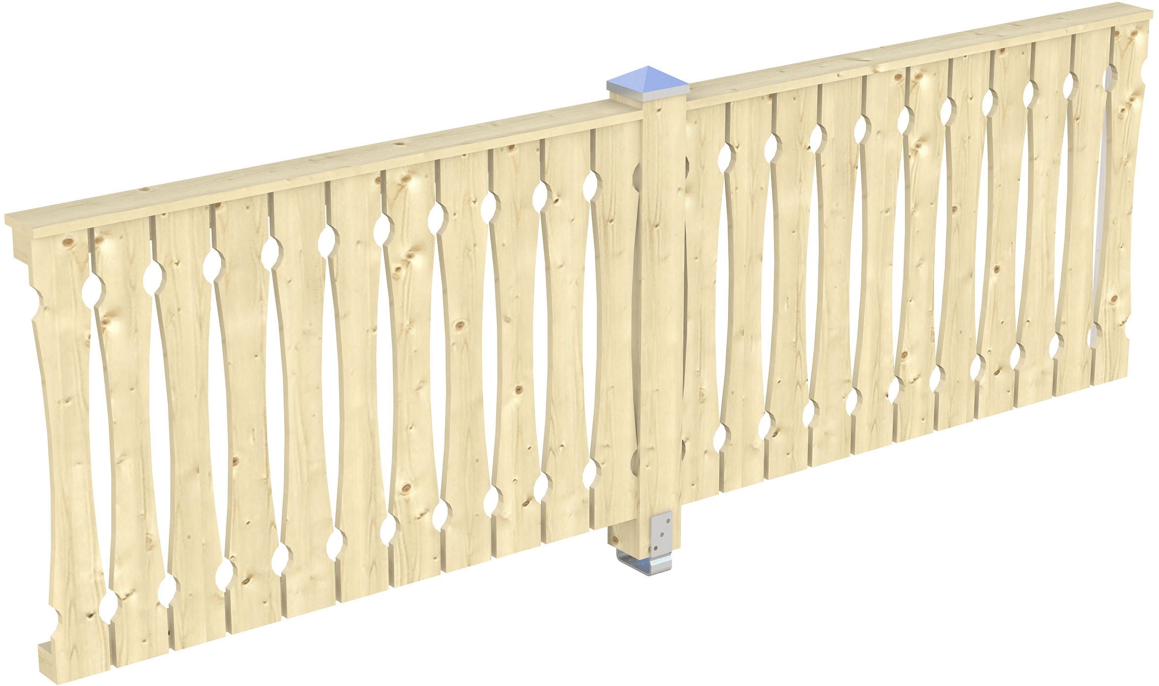 Die dekorative SKAN HOLZ Brüstung aus Balkonschalung für die Seite eignet sich für SKAN HOLZ Terrassenüberdachungen aus Leimholz mit einer Tiefe von 350cm und 339cm.