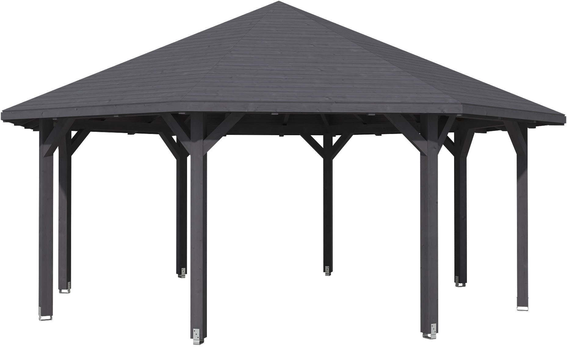 Das Dach wird mit 20 mm starker Dachschalung zur Eindeckung mit Dachschindeln geliefert (Dachschindeln sind als Zubehör optional bestellbar).
