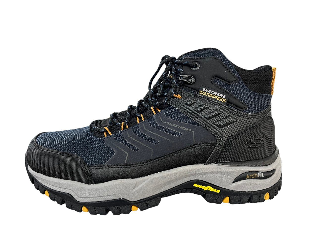 Mit dem SKECHERS ARCH FIT DAWSON-RAVENO können Sie den Weg mit gepolstertem Komfort und sportlichem Abenteuerstil beschreiten. Sein Obermaterial besteht aus strapazierfähigem Leder mit synthetischen Überzügen für Waterproof zusätliche Haltbarkeit und Stabilität, zudem ist der High-Top Sneaker wasserabweisend. Mesh- und Stoffeinsäte an der Vordersiet, den Seiten und Ferse, sorgen für einen kühlen Effekt. Seine Schnürung durch Metallösen sorgen für perfekten Sitz und Halt, wobei der seitliche Reißverschluss für einen raschen Ein- und Ausstieg sorgt. Mit luftgekühlter Memory Foam - gepolsterte Komfort-Einlegesohle sowie einer stoßdämpfenden Zwischensohle. Flexible Außensohle aus Gummi mit hoher Traktion für jedes Gelände.