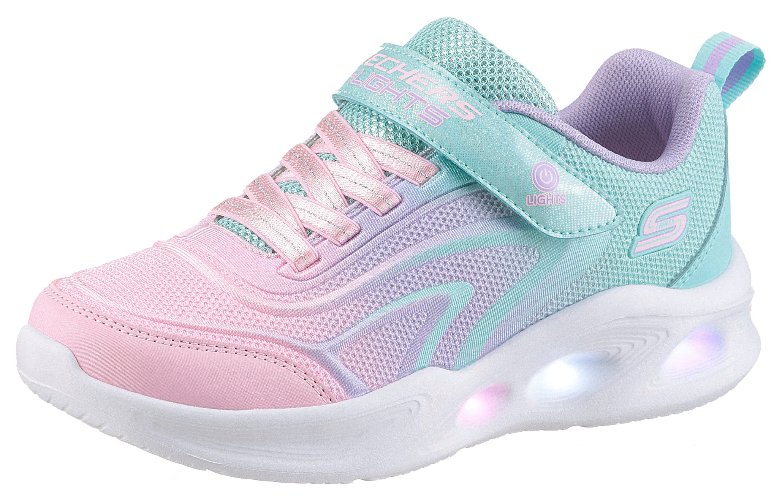 Mit den Sneakern von Skechers macht Spielen und Toben noch mehr Spaß! Mit dem Gummizug und dem Klettverschluss kann sich der Schuh individuell auf den Fuß anpassen und dein Mini-Me ist schnell angezogen.