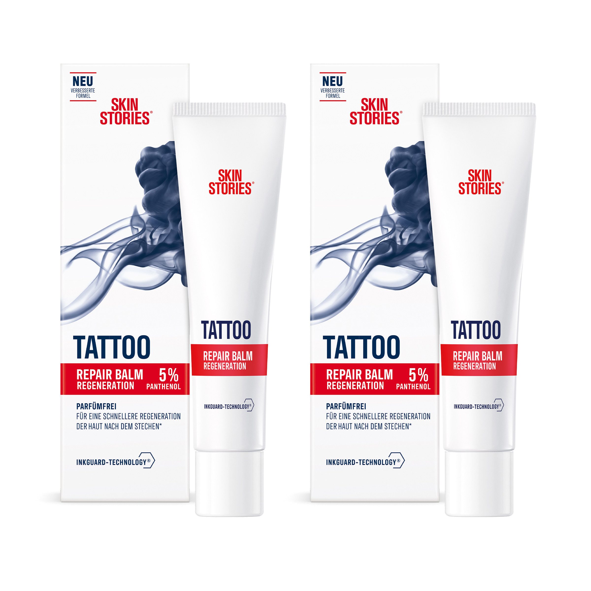 Anwendung | An Tag 4 nach dem Stechen beginnen, die beanspruchte Haut mit dem Repair Balm zu pflegen. Bis zu sechs Mal am Tag dünn auftragen, idealerweise 10 Tage lang. Im Anschluss mit der täglichen Tattoo-Pflege fortfahren. Wir empfehlen die SKIN STORIES Daily Lotion. |