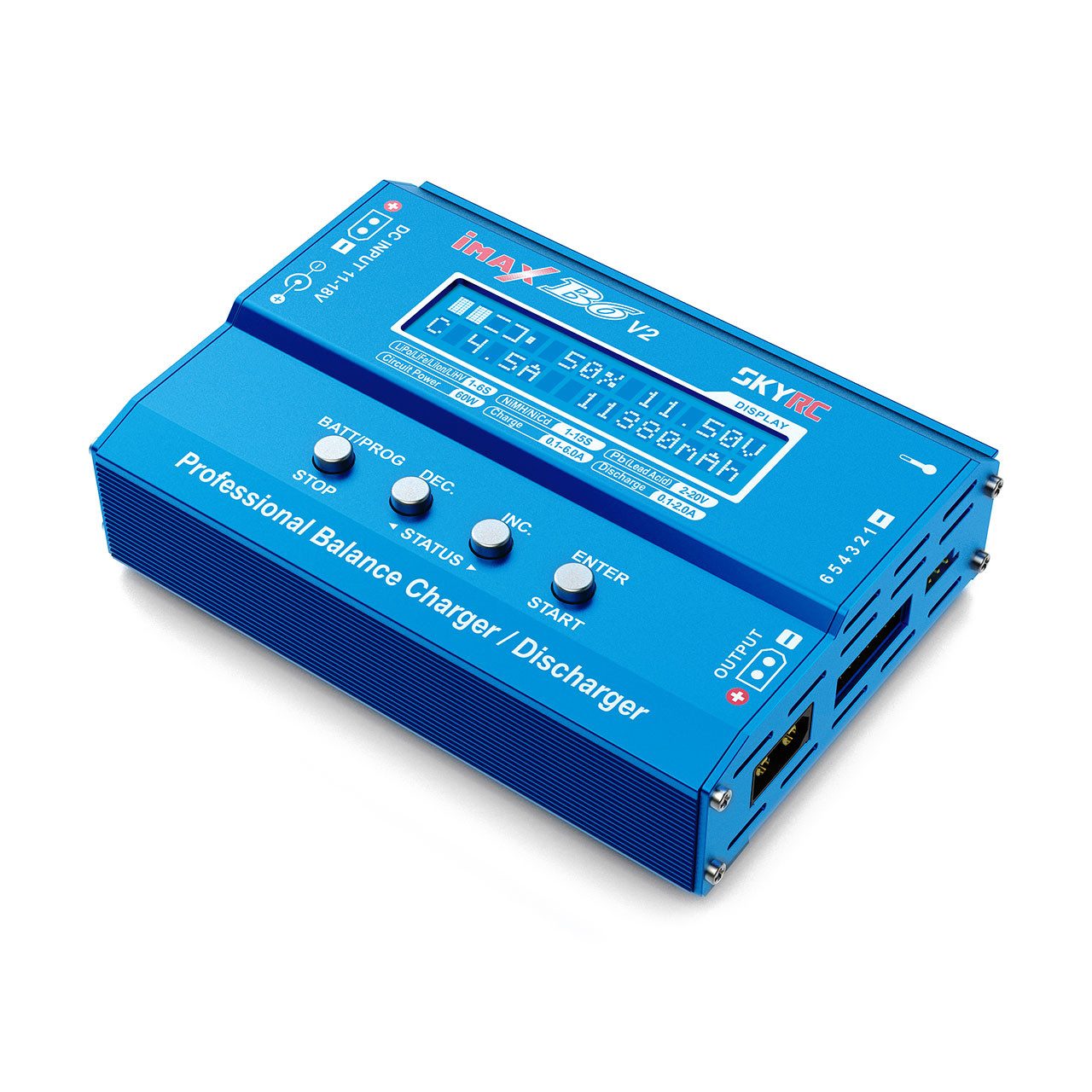Der SKYRC B6 DC V2 ist ein leistungsstarkes, Mikroprozessorsteuerung Lade-/ Entladegerät auf der nächsten Evolutionsstufe mit Akkumanagement für den Einsatz mit allen gängigen Batterietypen. Es besitzt maximal 6A Ladestrom bei max. 60W und erleichtert dem Anwender das Ablesen des Displays dank des neuartigen Batteriee-Icons mit Prozentanzeige daneben.