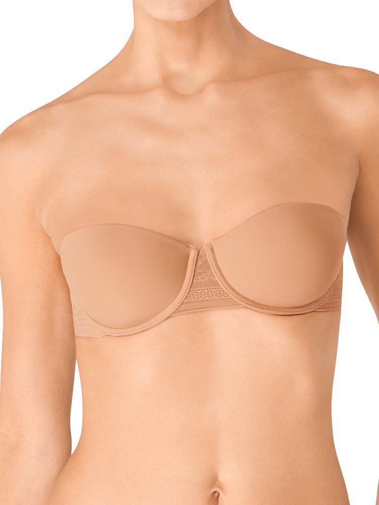 Der BH zeichnet sich durch seine funktionalen Eigenschaften aus, wie die seitlich eingearbeiteten Silikonstreifen, die einen perfekten Halt auch ohne Träger ermöglichen. Dies macht ihn ideal für den Einsatz als trägerloser BH unter Kleidern oder Tops.