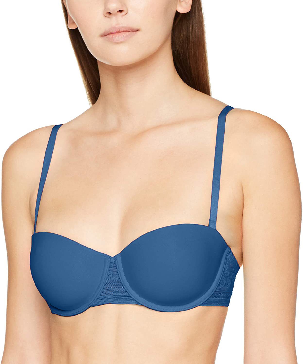 Die leicht gepolsterten Spacerkörbchen formen die Brust auf natürliche Weise und bieten den nötigen Halt. Ergänzt wird das Design durch leicht transparente Spitze zwischen den Körbchen, die dem BH ein elegantes Flair verleiht. Die Seitenteile sind weich und für zusätzlichen Komfort breiter geschnitten.