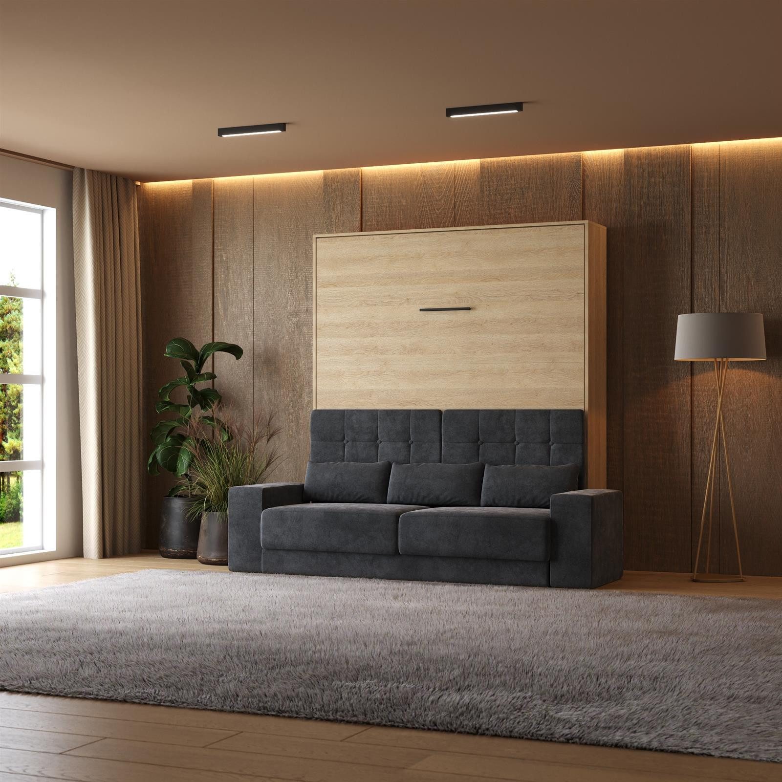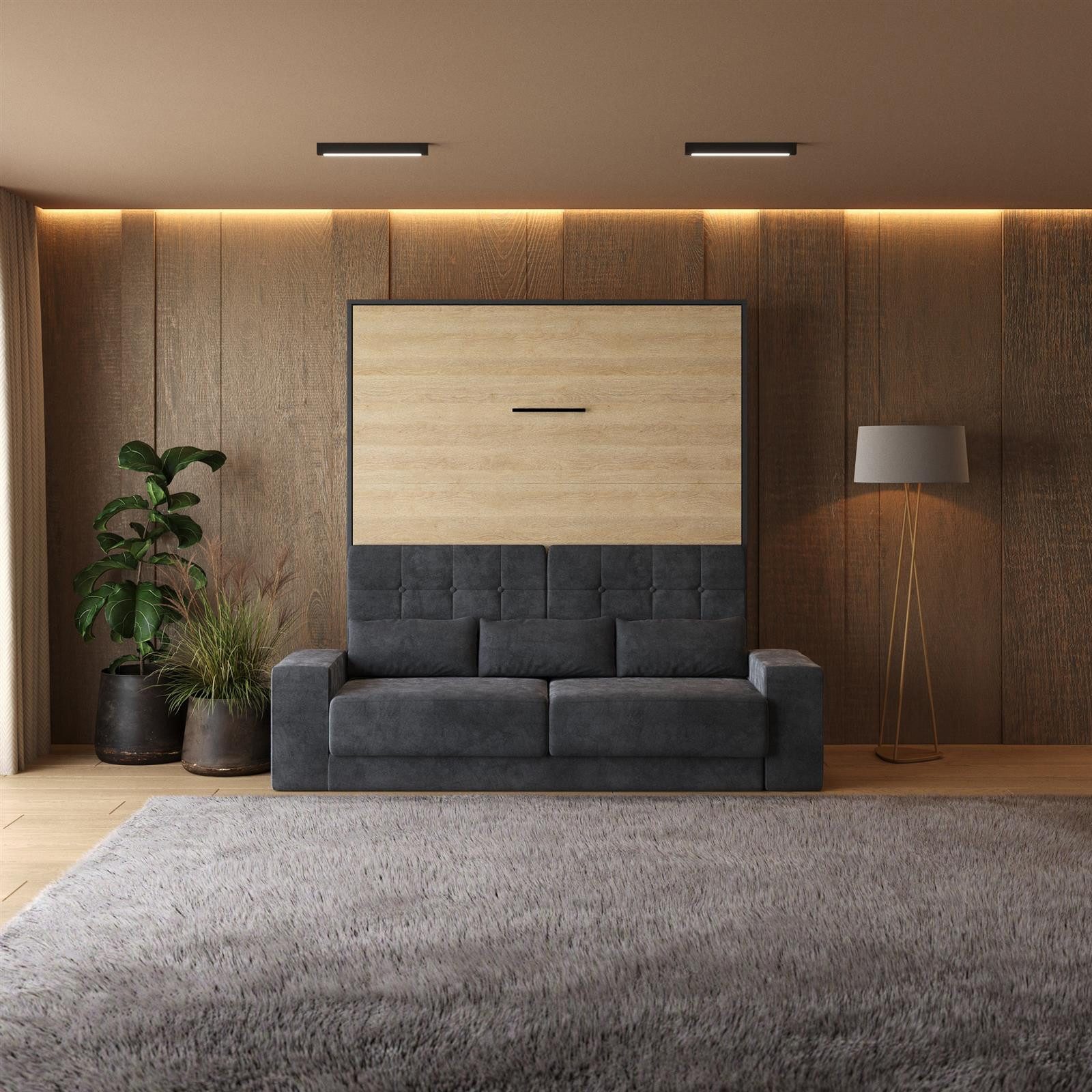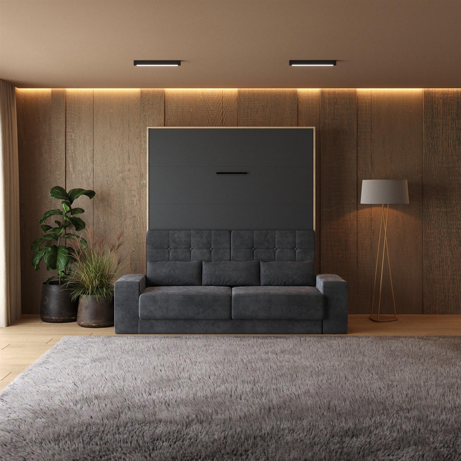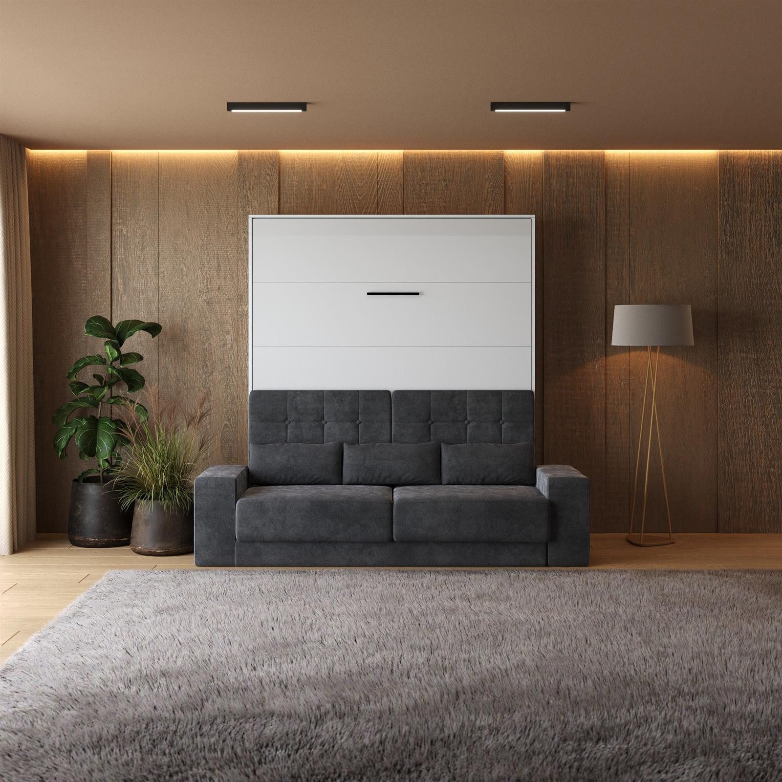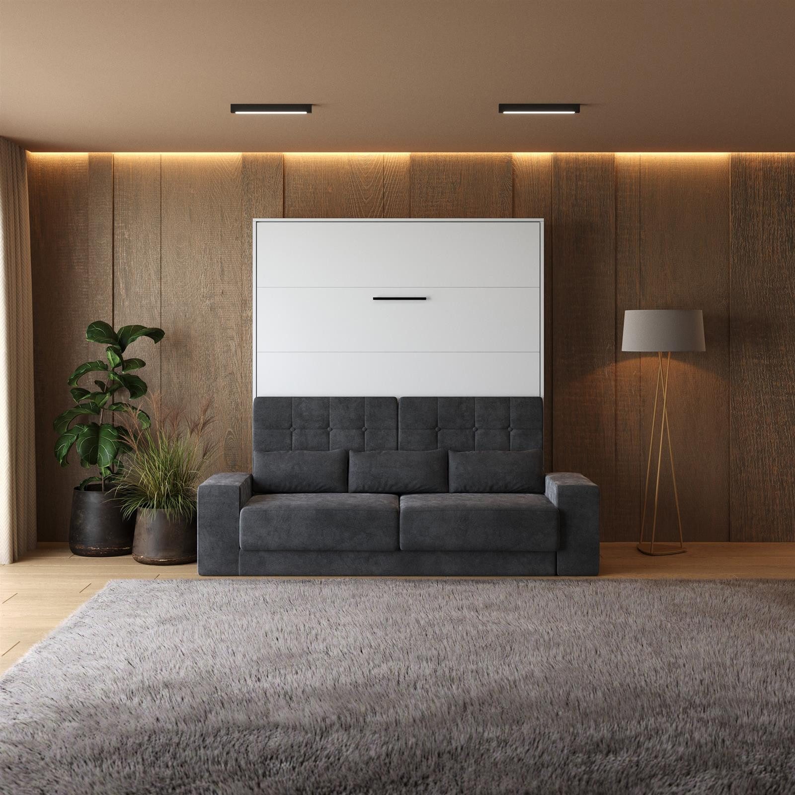 SMARTBett Schrankbett M1 180x200 Vertikal inkl. Gasdruckfedern & SOFA - Wandbett, Wandklappbett fürs Gästezimmer, Büro, Wohnzimmer, Schlafzimmer, Ferienwohnung