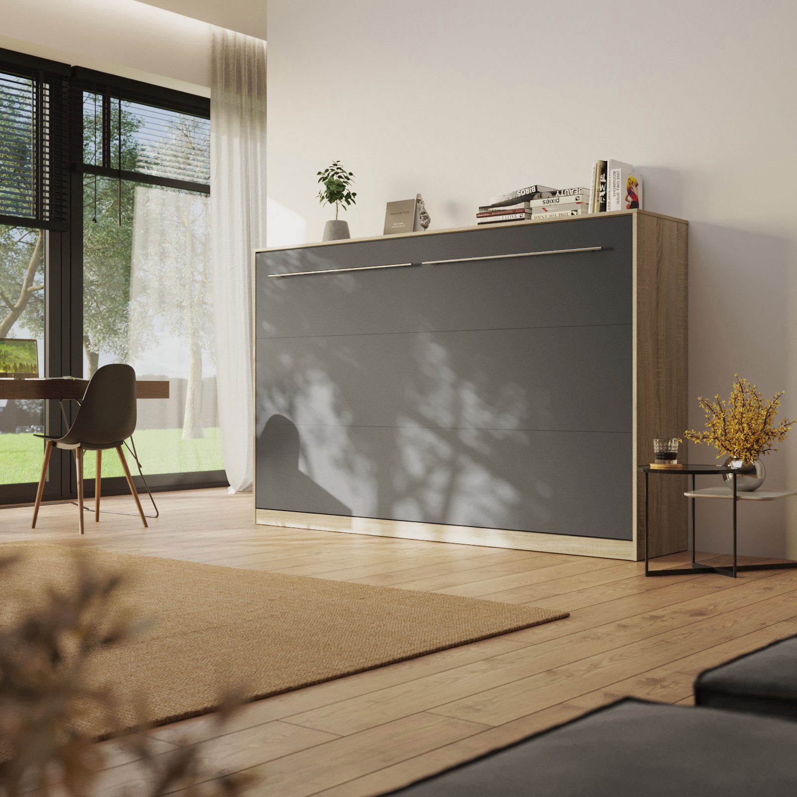 Wissenswertes | Gasdruckfedern unterstützen das Auf- und Zuklappen des Bettes Wandbefestigung erforderlich Inkl. zwei Spanngurten zur Fixierung der Matratze |