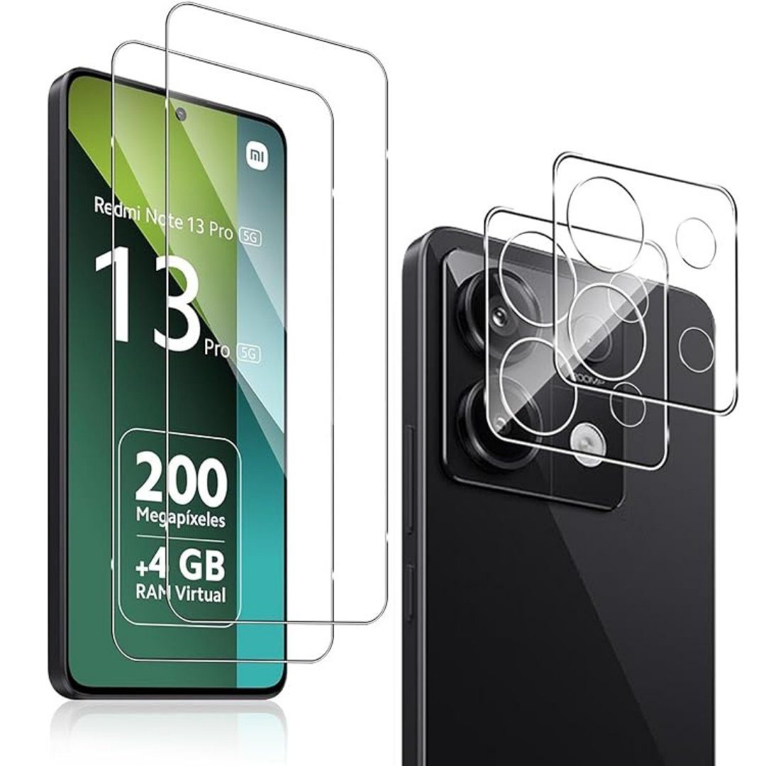 Das Schutzglas für Xiaomi Redmi Note 13 Pro 5G bietet umfassenden Schutz für Ihr Gerät mit einem praktischen 4er Set. Dieses Set umfasst zwei Displaygläser und zwei Kameragläser, um sowohl das Display als auch die Kamera Ihres Xiaomi Redmi Note 13 Pro 5G vor äußeren Einflüssen zu bewahren. Durch die spezielle Konstruktion erhalten Sie einen optimalen Schutz vor Stößen, Kratzern und Staub, sodass Ihr Gerät immer in einwandfreiem Zustand bleibt.