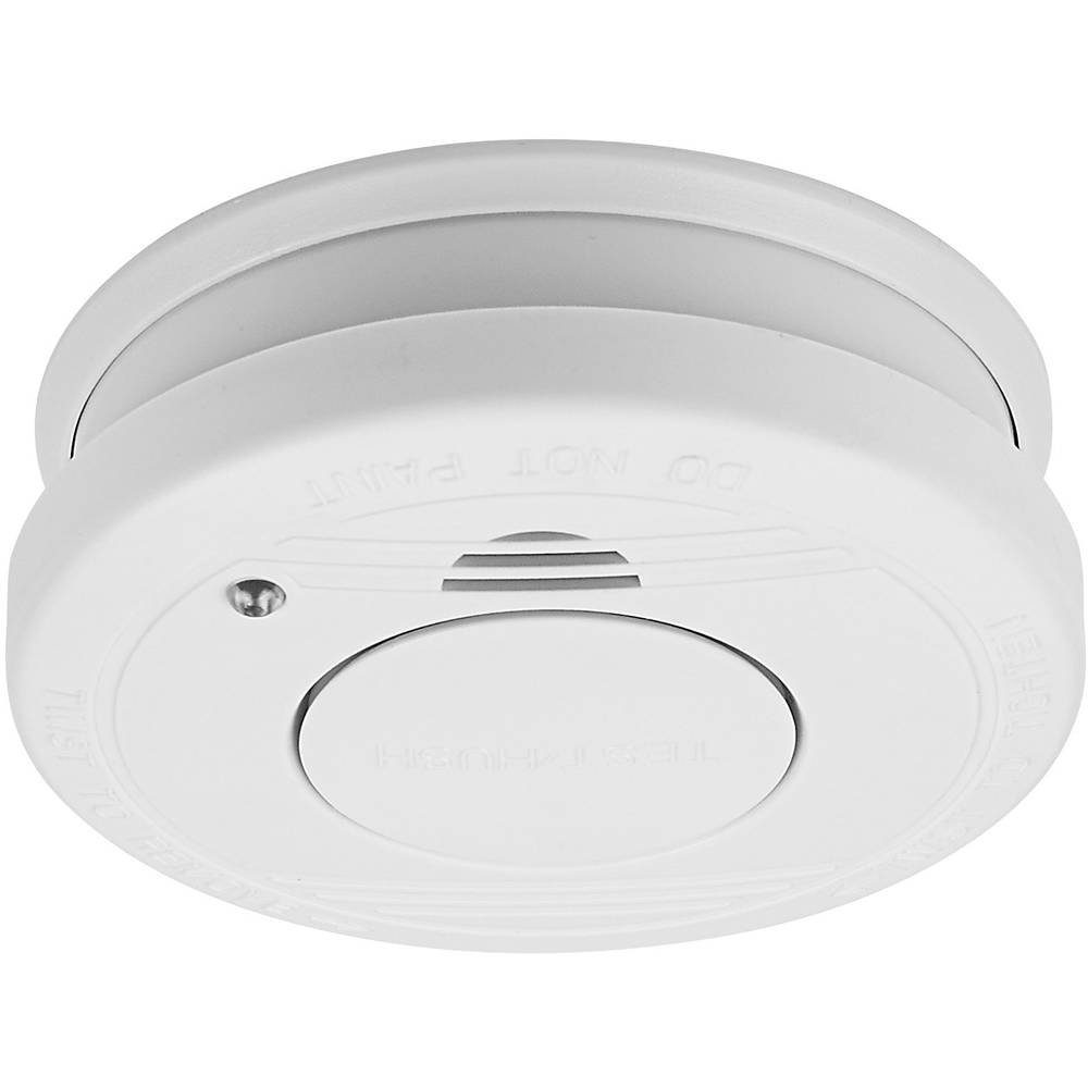 5-Jahres-Rauchmelder mit austauschbarer Batterie und 85 dB. Mit der Stumm-Taste kann die Empfindlichkeit des Alarms für 10 Minuten verringert werden..