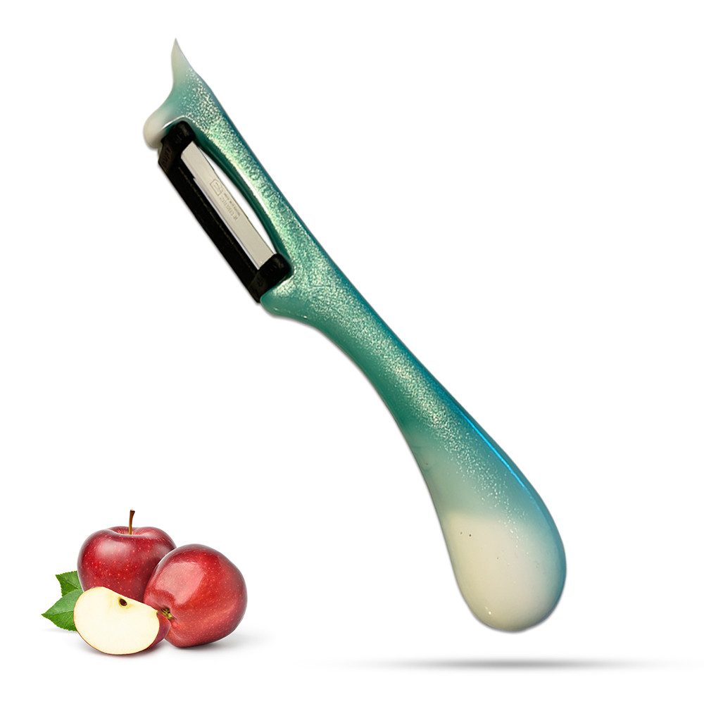 Rasiermesserscharfe Edelstahlklinge für feines und präzises Schälen – ideal für verschiedenste Obst- und Gemüsesorten, ohne Kraftaufwand.