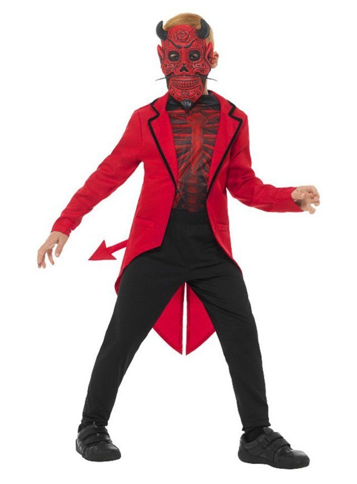 Smiffys Teufel-Kostüm Teufel - Halloween Kostüm Kinder Junge Mädchen, Auch der Teufel tanzt gerne beim Dia de los Muertos