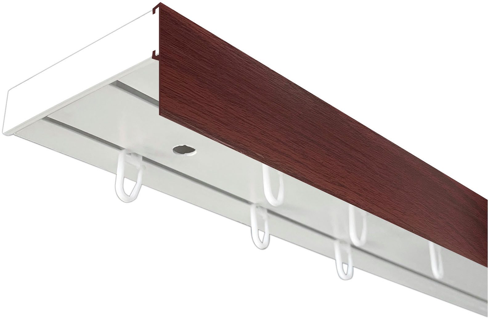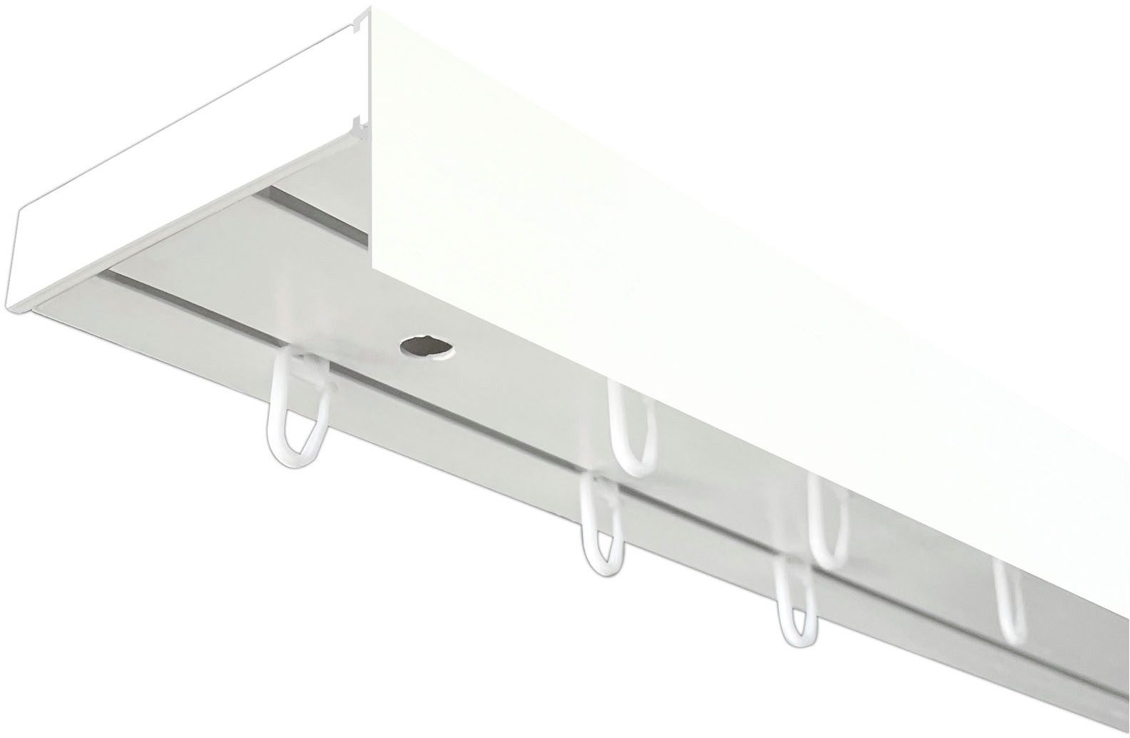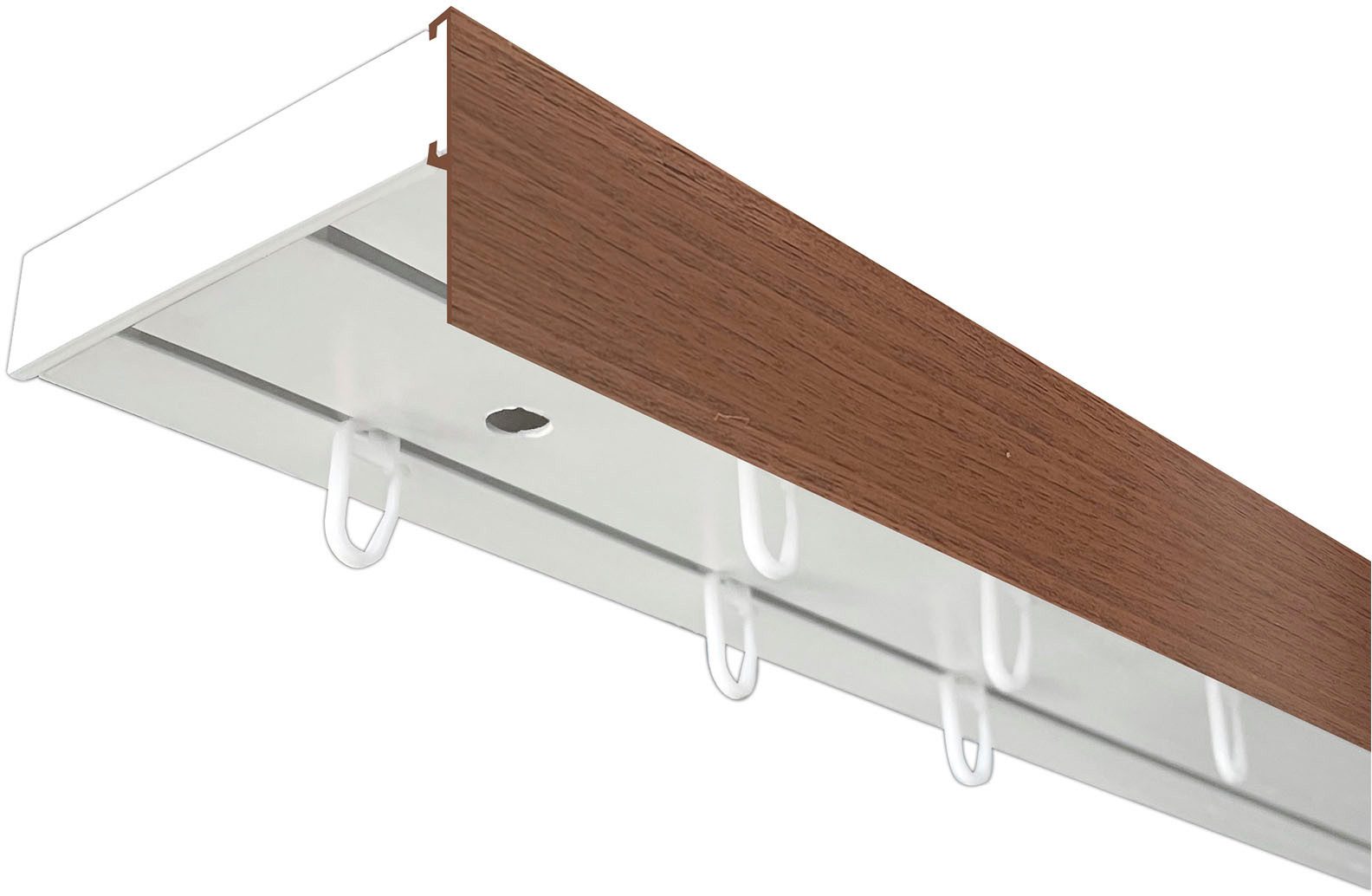 SN DECO GROUP - Vorhangschiene SH, Set 1-, 2- oder 3-läufig, mit Blende 5 cm, in verschiedenen Длинаn und Farben, vorgebohrt, Kunststoff, Innenlauf ? Vorgebohrte Löcher für die Deckenmontage ? Profil und Zubehör aus Kunststoff ? Profil aus eigener Применитьung ? Umfangreiches Zubehör inkl. Universalrollen ? Für Schiebevorhänge geeignet Ab 240 cm werden die Schienen geteilt, Verbinder wird mitgeliefert. Ab 450 cm in 3 Teilen. Die Blenden werden am Stück je nach Длина eingerollt geliefert. Im Set sind Schrauben, Dübel, Abdeckkappen für die Schrauben, Endkappen und Universalrollen enthalten. Die SN DECO GROUP PVC Vorhangschienen aus eigener Produktion ermöglichen Ihnen eine Vielzahl an Gestaltungsmöglichkeiten ihrer Wohnräume. In Verbindung mit dem umfangreichen Zubehör können so ganze Fensterfronten mit Außen- oder Innenecken dekoriert werden. Die PVC Vorhangschiene ergänzt mit Rundbögen bildet einen eleganten Abschluss zur Wand. Die Zubehörteile werden auf die Vorhangschiene aufgesteckt und mit den ebenfalls vorgebohrten Löchern an die Decke befestigt. Mit der Blende aus PVC, in 5 cm oder 7,5 cm Höhe, schaffen Sie einen zusätzlichen dekorativen Abschluss an der Decke. Die Blende ist in verschiedenen Holzoptiken und Farben erhältlich. Die Blende wird vor der Montage auf den dafür vorgesehenen Kanal aufgeschoben. So schaffen Sie eine elegante Lösung um Gleiter/Paneelwagen und die Stoßkante (bei geteilten Anlagen) zu verdecken.