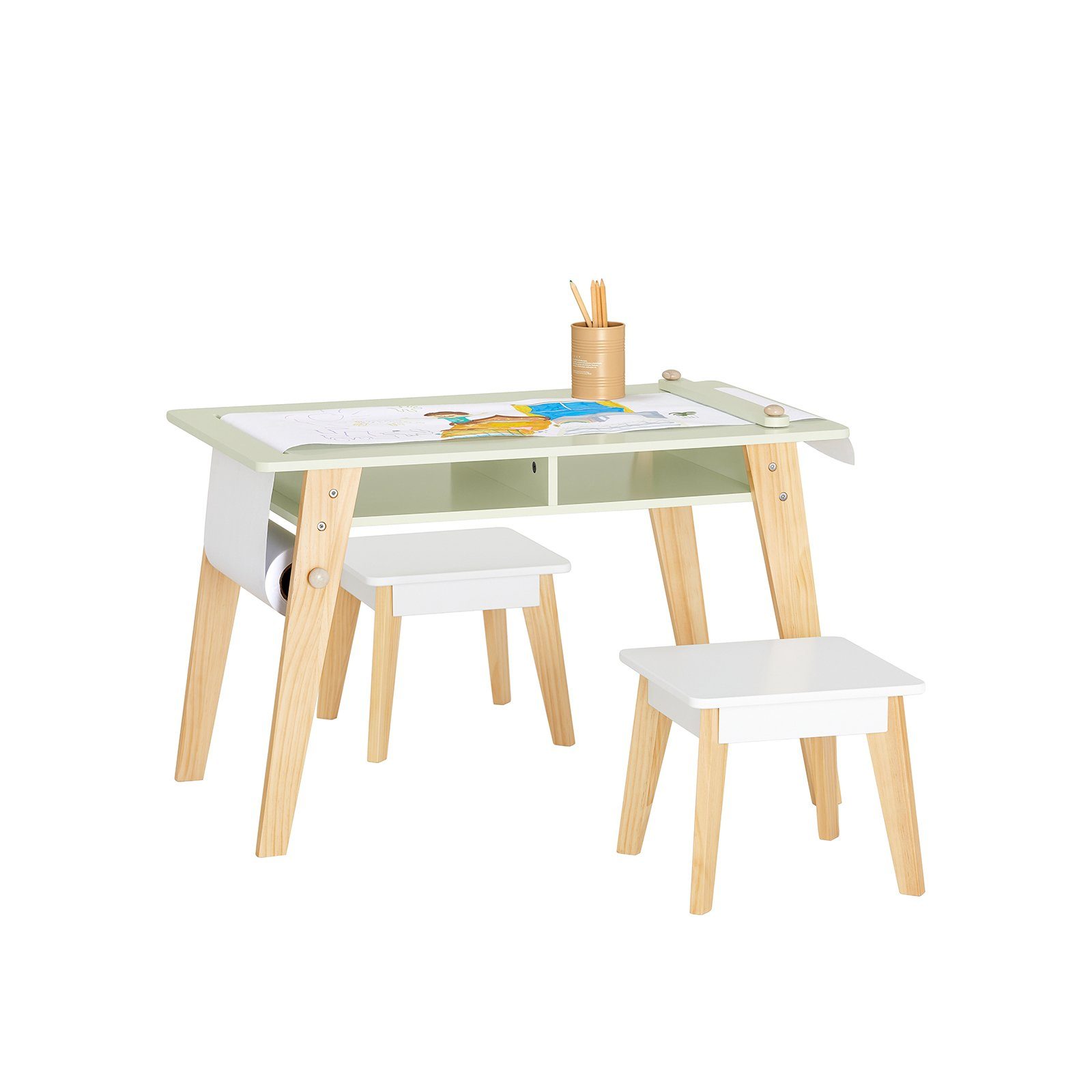 - Farbe: Weiß+Grün - Material: MDF(E1), Kiefer - Produktmaße: Tisch: BHT ca. 80x50x48cm; Stuhl: BHT ca. 31x26x30cm - Paketmaße: BHT ca. 93x55x12cm - Gewicht: 11,1kg - Belastbarkeit: Tisch: bis 28kg; Stuhl: bis 75kgLieferumfang:
