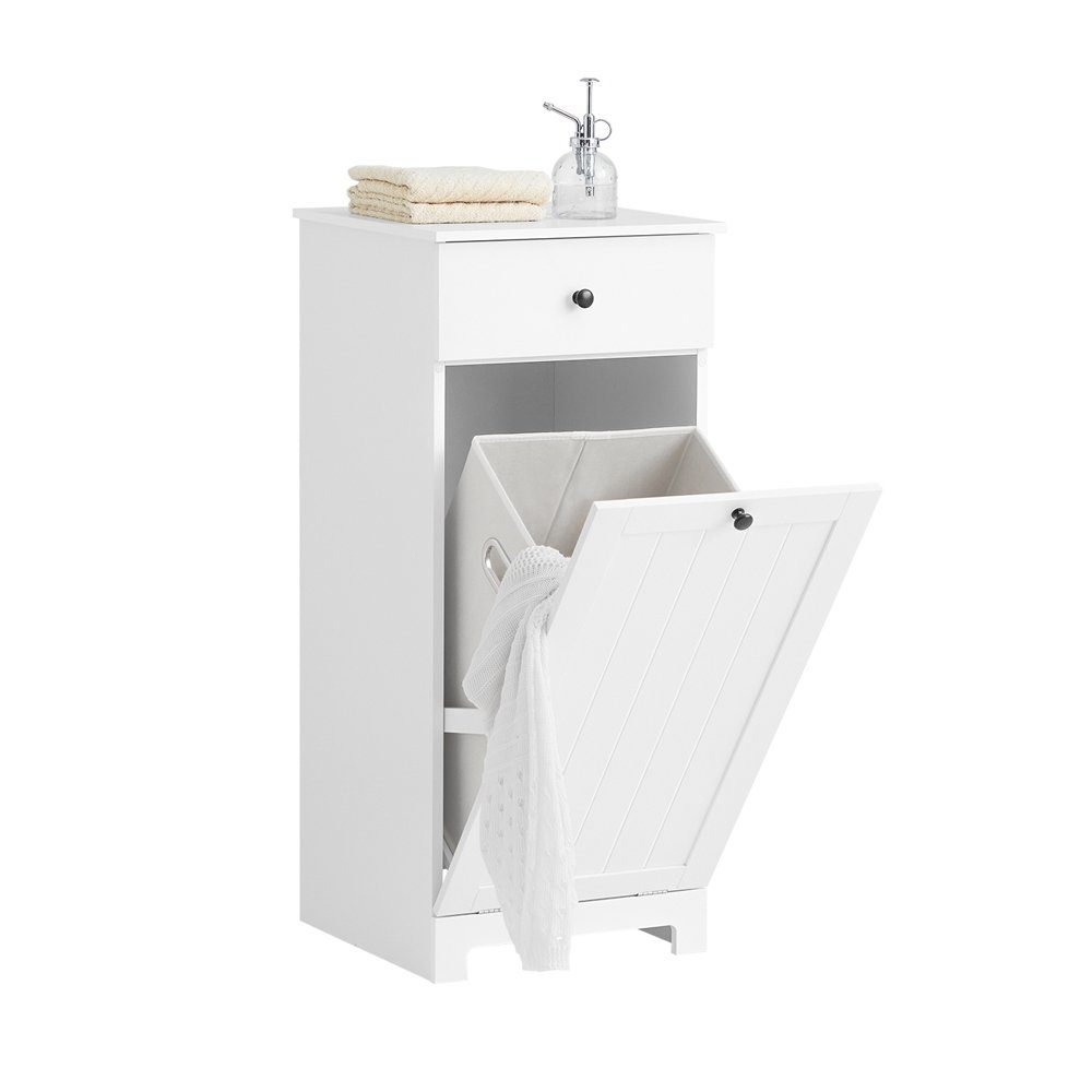 - Farbe: Weiß/Dunkelgrau - Material: MDF(E1), Korb aus Vlies - Produktmaße: BHT ca. 40x90x38cm (Siehe Abbildung) - Paketmaße: 97x10x43cm - Gewicht: 15kg - Belastbarkeit: bis 40kgLieferumfang: