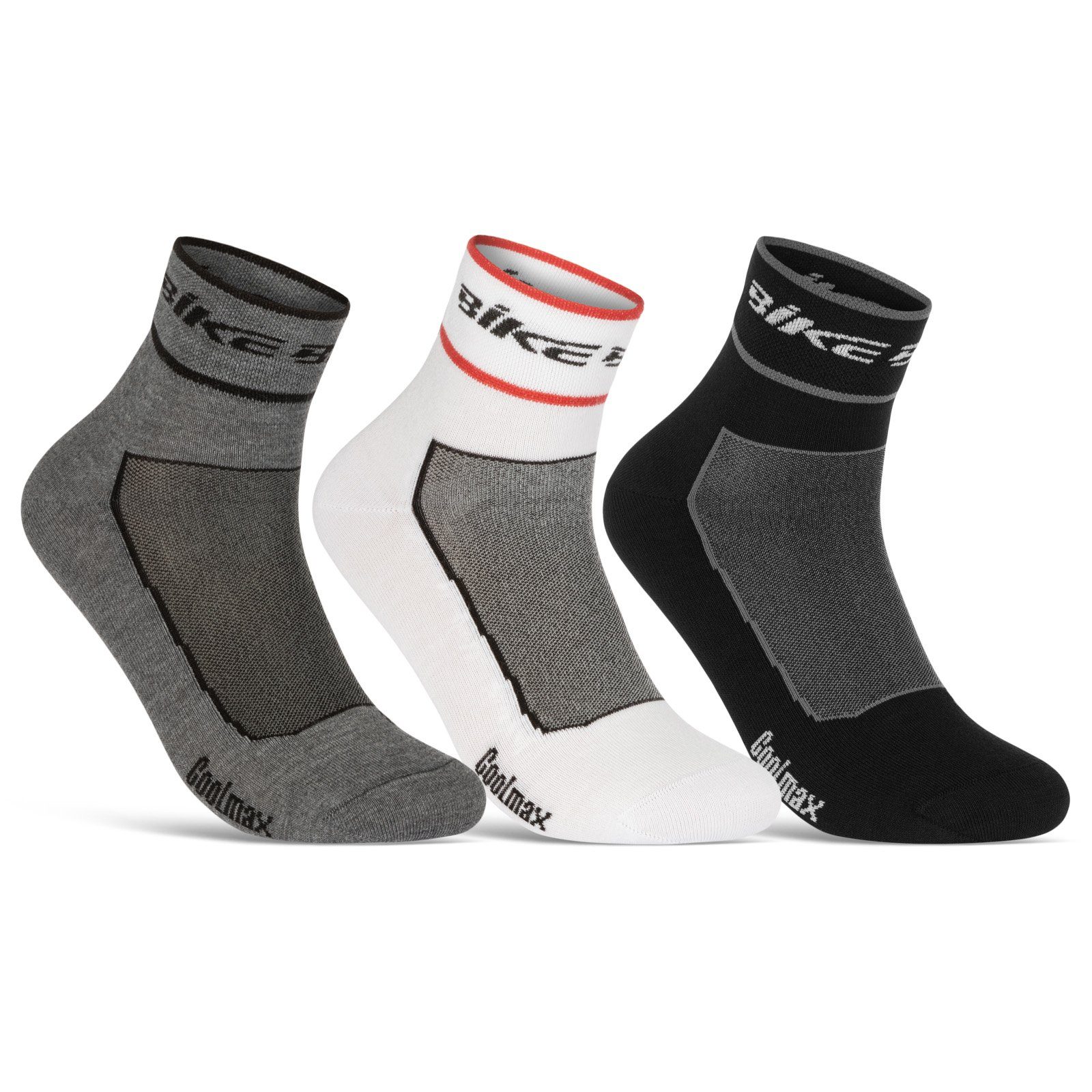 3 Paar Quarter Fahrrad-Socken für Damen & Herren