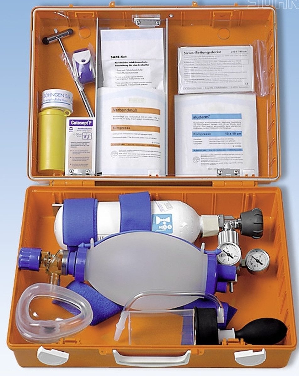 • Aus den Funktionsbereichen Beatmung, Sauerstoff, Absaugung, Injektion, Infusion, Diagnostik und Wundversorgung ist alles Notwendige für einen akuten Notfall enthalten