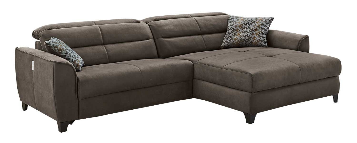 Lieferumfang | 1 Ecksofa mit beidseitig montierbarer Ottomane, elektrischer Relaxfunktion, 2 Kopfteilverstellungen und 2 Wendekissen |