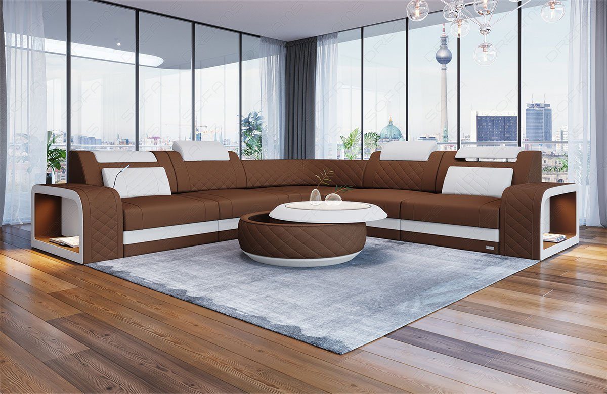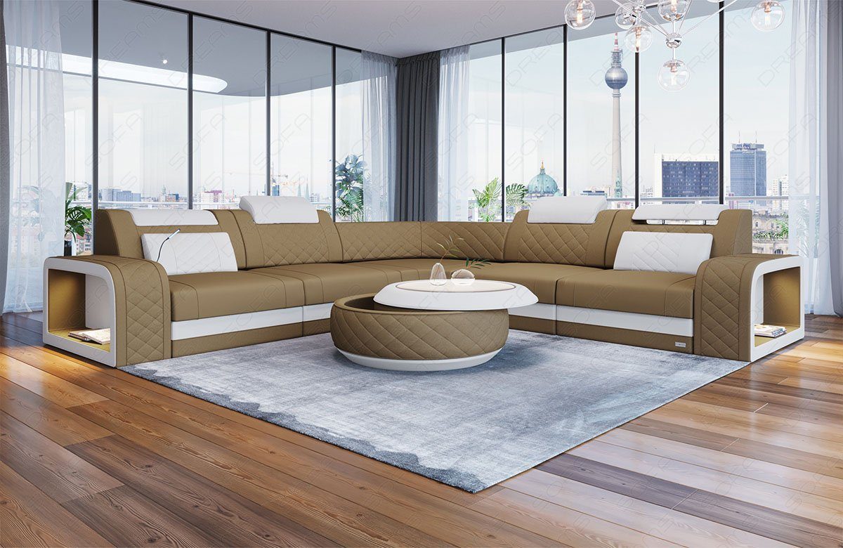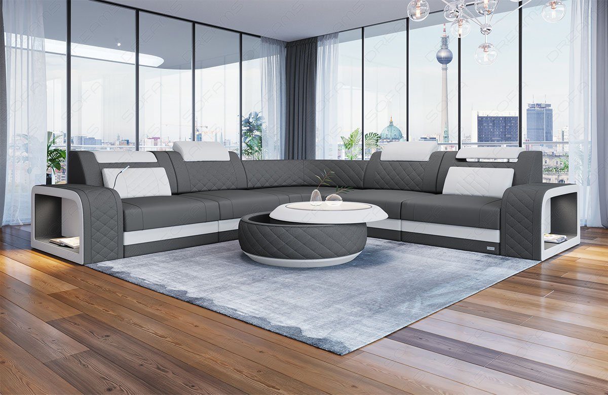 Sofa Dreams Ecksofa Stoff Couch Polstersofa Foggia L Form Stoffsofa, mit LED, USB Anschluss, Designersofa