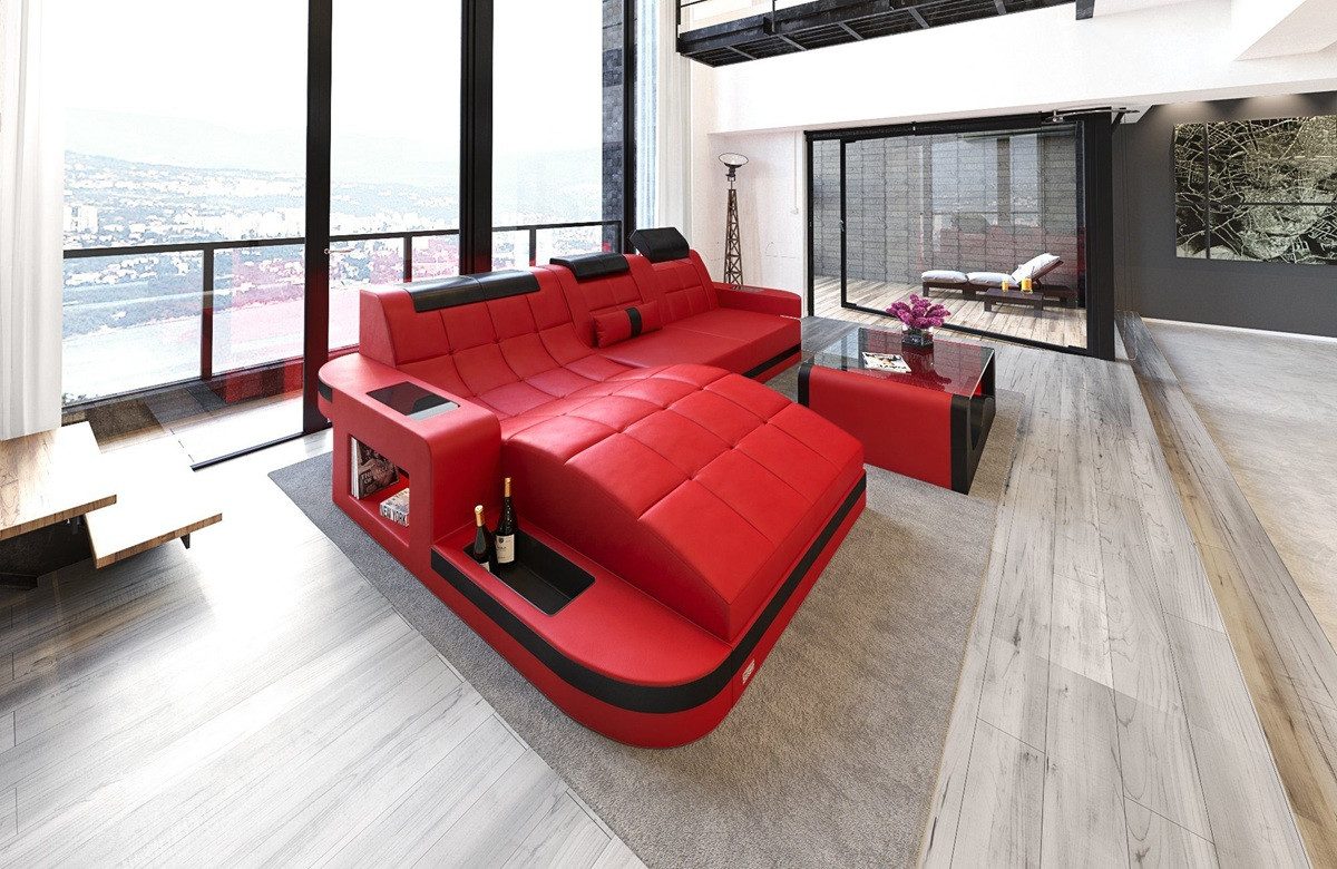 Ob in klassischem Schwarz, trendigem Taupe oder markantem Rot – das Leder Ecksofa Wave L Form bringt ein Hauch von Luxus, Technik und Stil in jedes Zuhause.