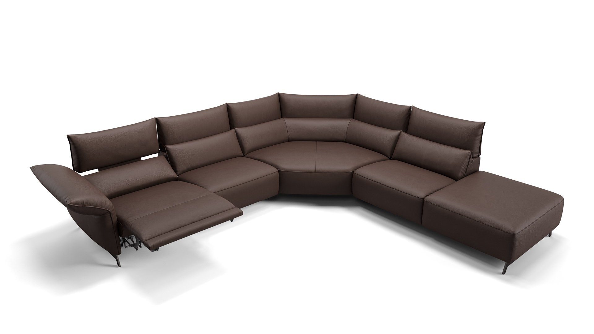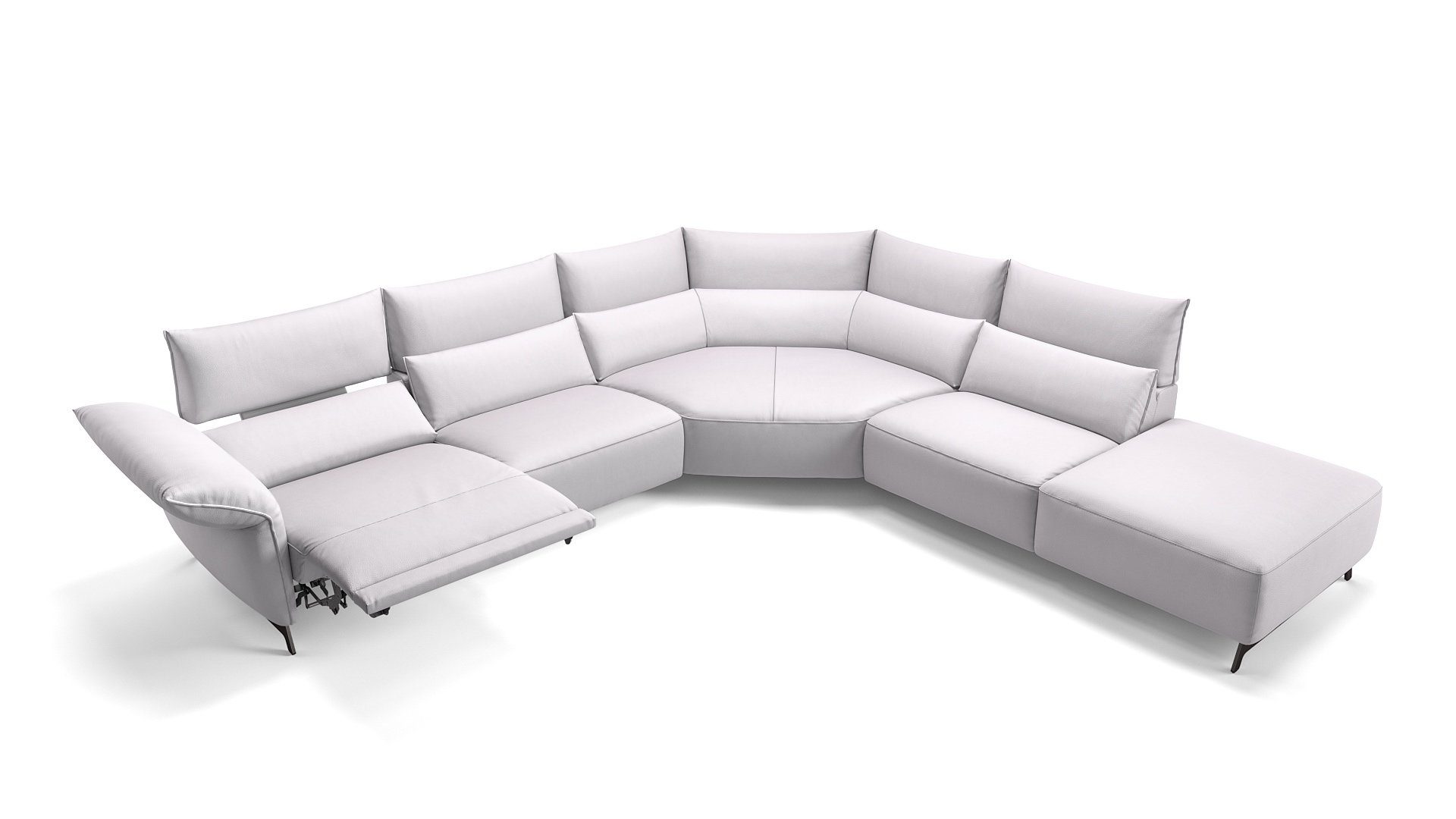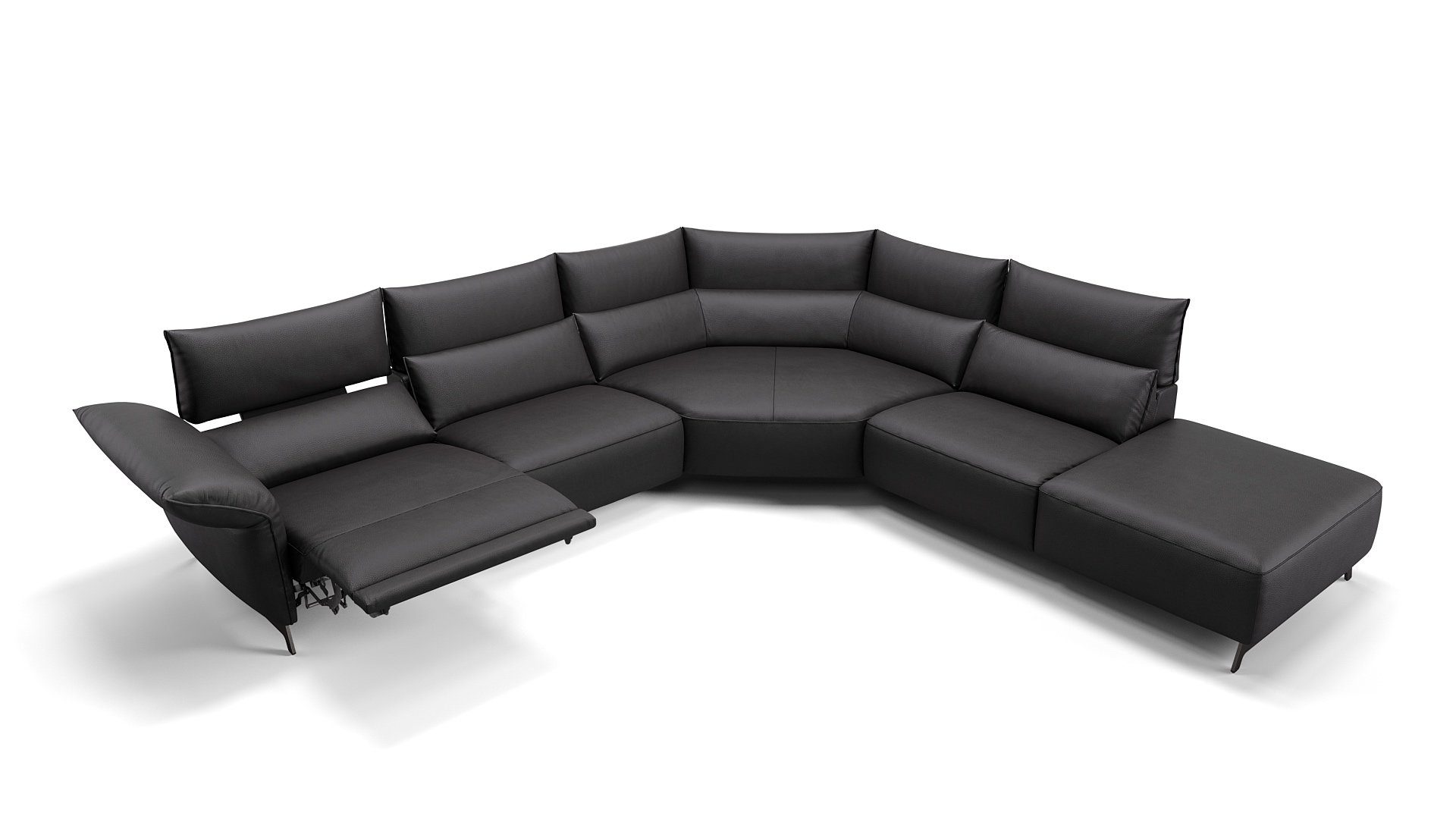 Ausstattung | Elektrische Relaxfunktion am Außensitz 3 Elektrisch höhenverstellbare Kopflehnen Kopflehnen sind im Neigungswinkel auch verstellbar Armlehnen stufenweise verstellbar 7 verschiedene Fußfarben Italienisches Design Sofa wandfrei stellbar |