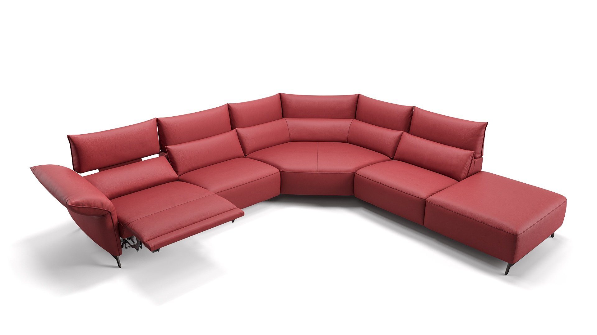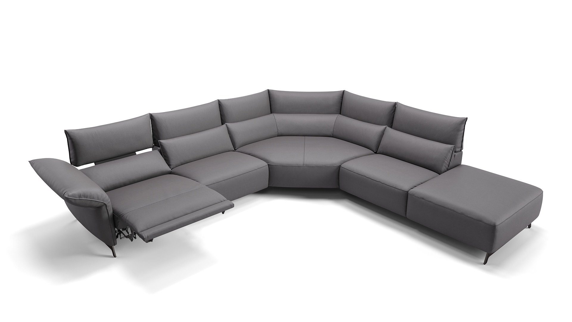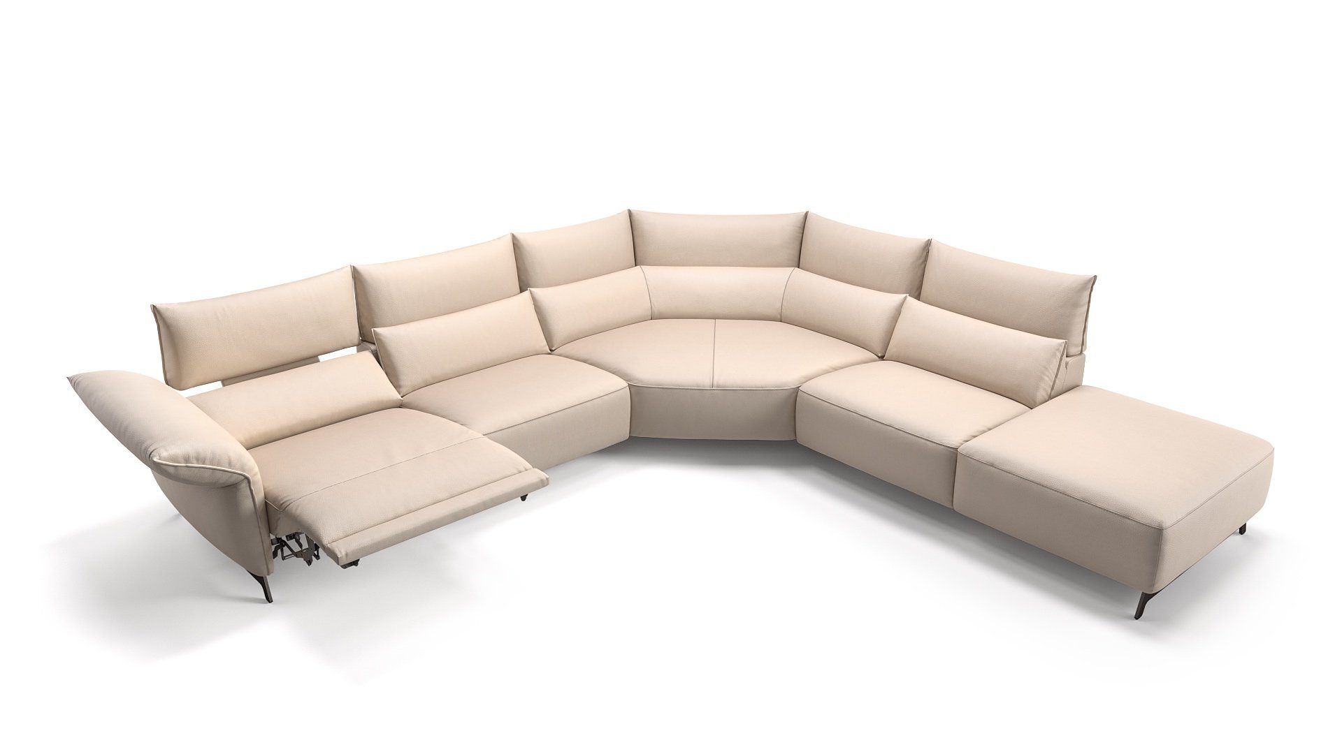 Ausstattung | Elektrische Relaxfunktion am Außensitz 3 Elektrisch höhenverstellbare Kopflehnen Kopflehnen sind im Neigungswinkel auch verstellbar Armlehnen stufenweise verstellbar 7 verschiedene Fußfarben Italienisches Design Sofa wandfrei stellbar |