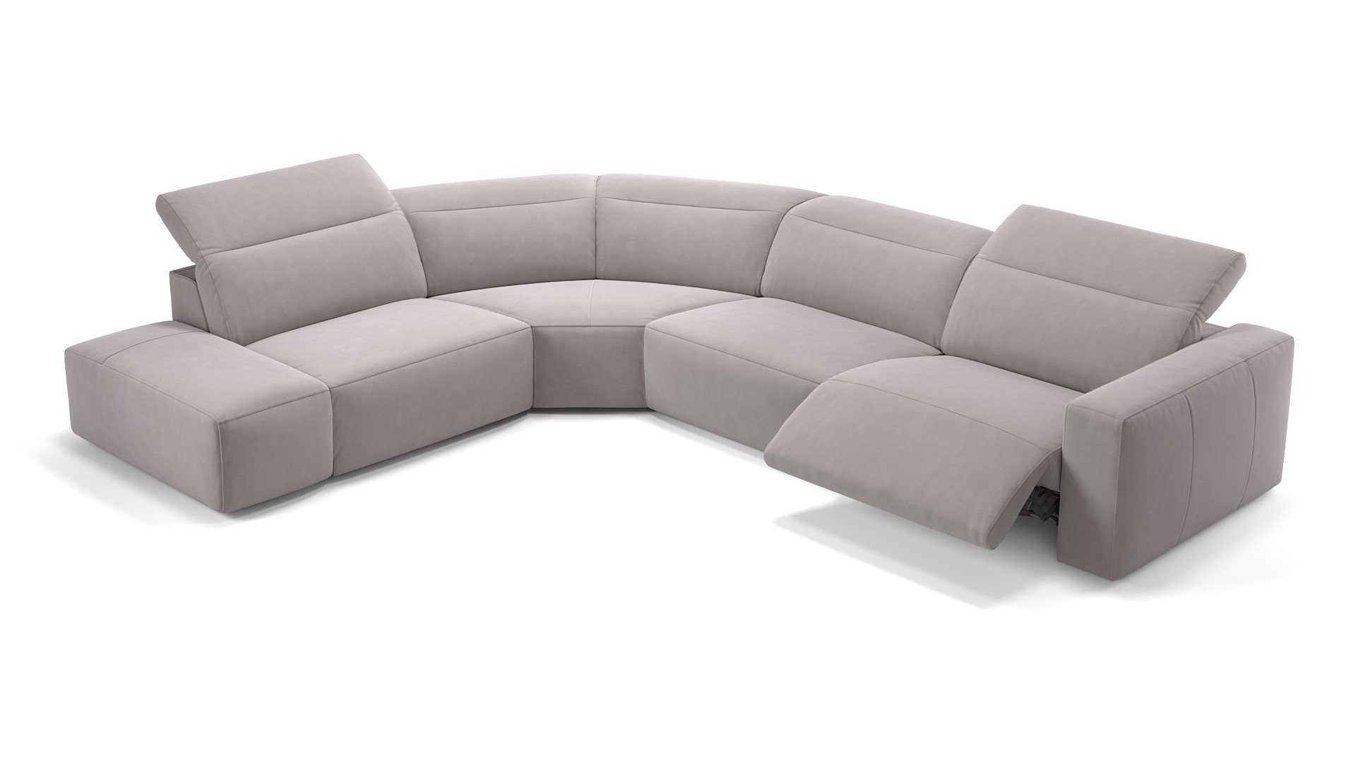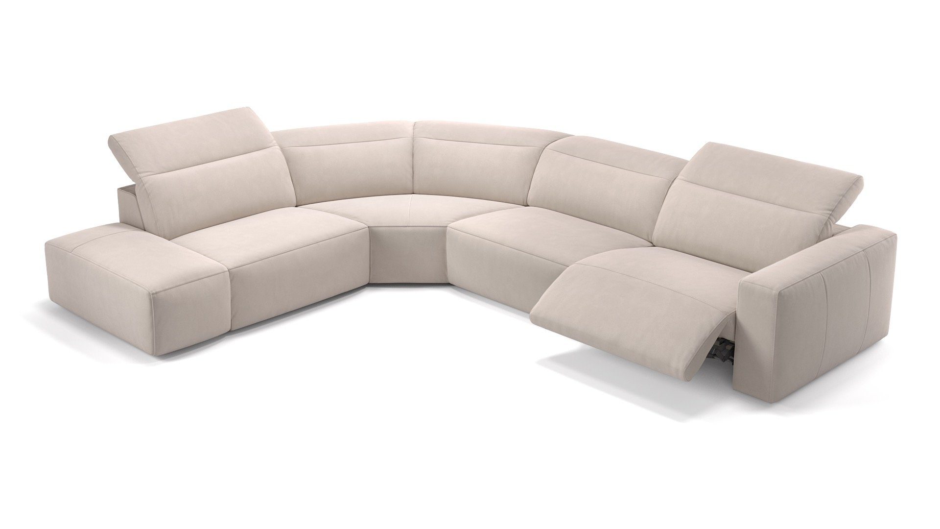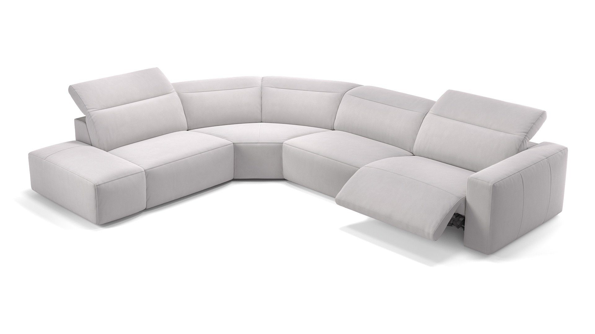 Ausstattung | Elektrische Relaxfunktion per Knopfdruck am äußeren Sitz Elektrisch verstellbare Kopflehne am äußeren Sitz Ecksofa in 3 Größen bestellbar 2 weitere Kopflehnen sind mechanisch verstellbar Auf Anfrage Mittelsitz auch mit Relaxfunktion Italienisches Design wandfrei stellbar |