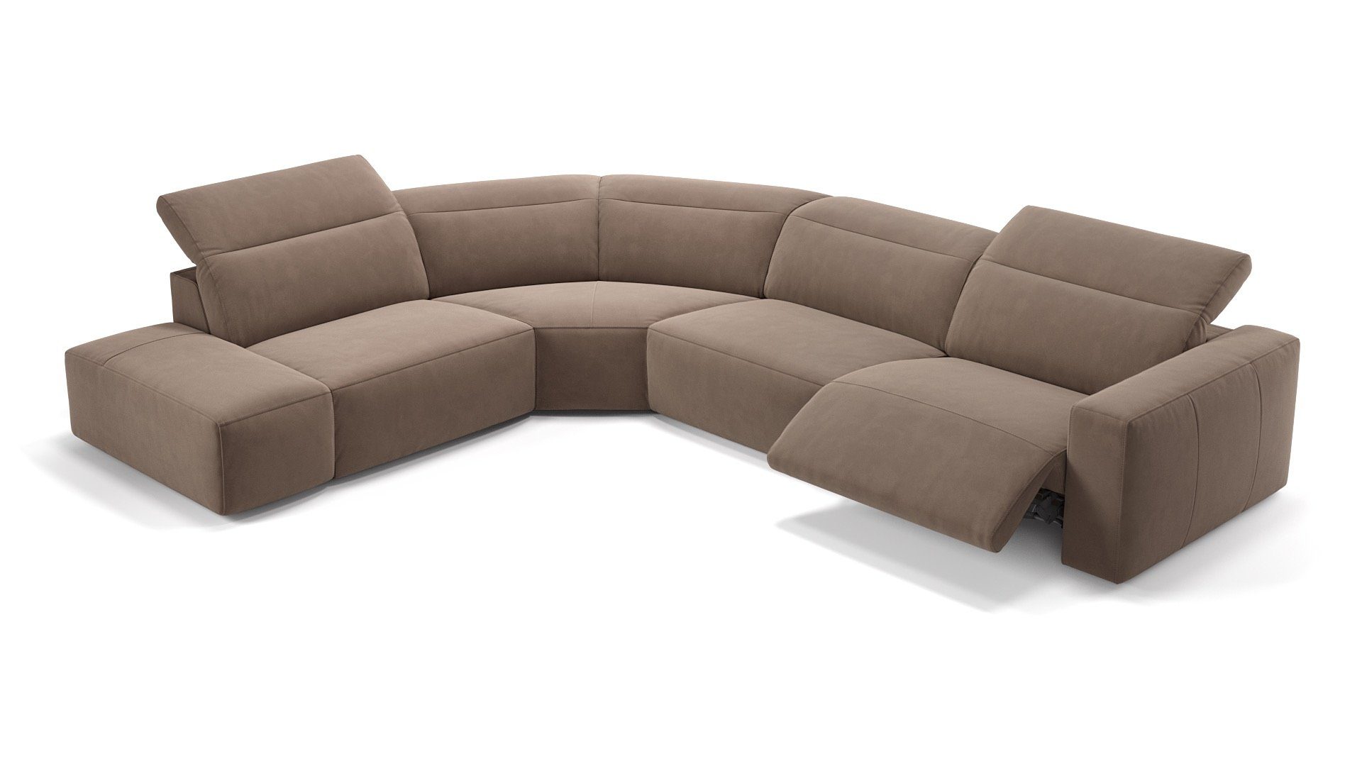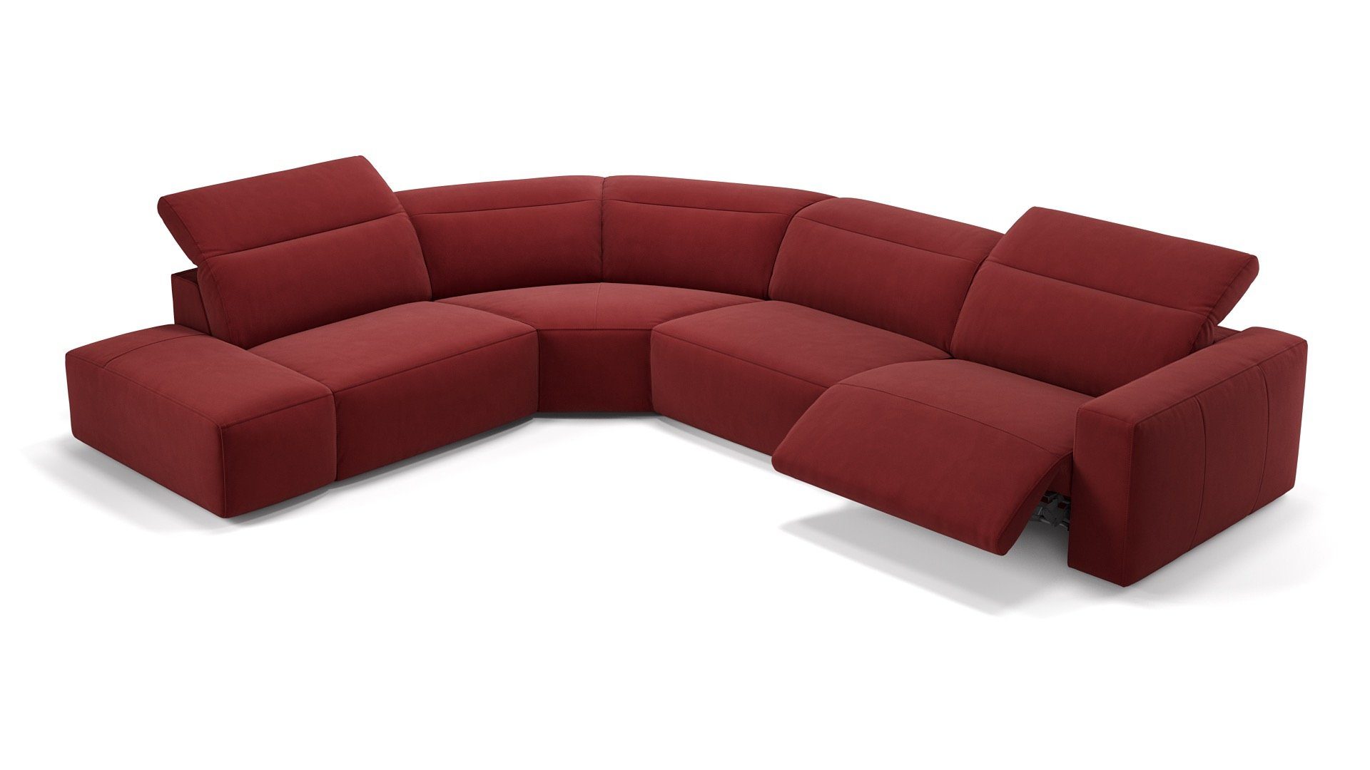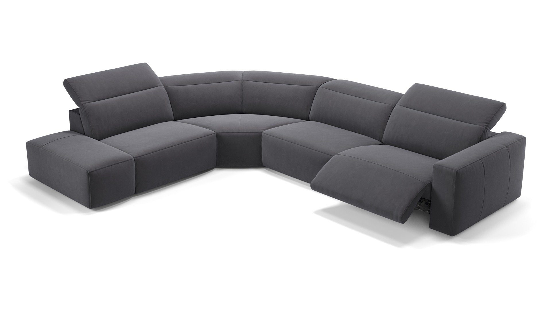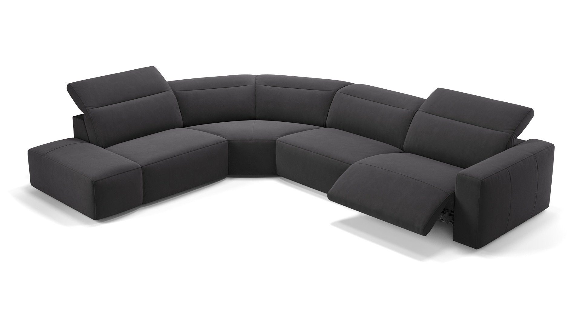 Ausstattung | Elektrische Relaxfunktion per Knopfdruck am äußeren Sitz Elektrisch verstellbare Kopflehne am äußeren Sitz Ecksofa in 3 Größen bestellbar 2 weitere Kopflehnen sind mechanisch verstellbar Auf Anfrage Mittelsitz auch mit Relaxfunktion Italienisches Design wandfrei stellbar |