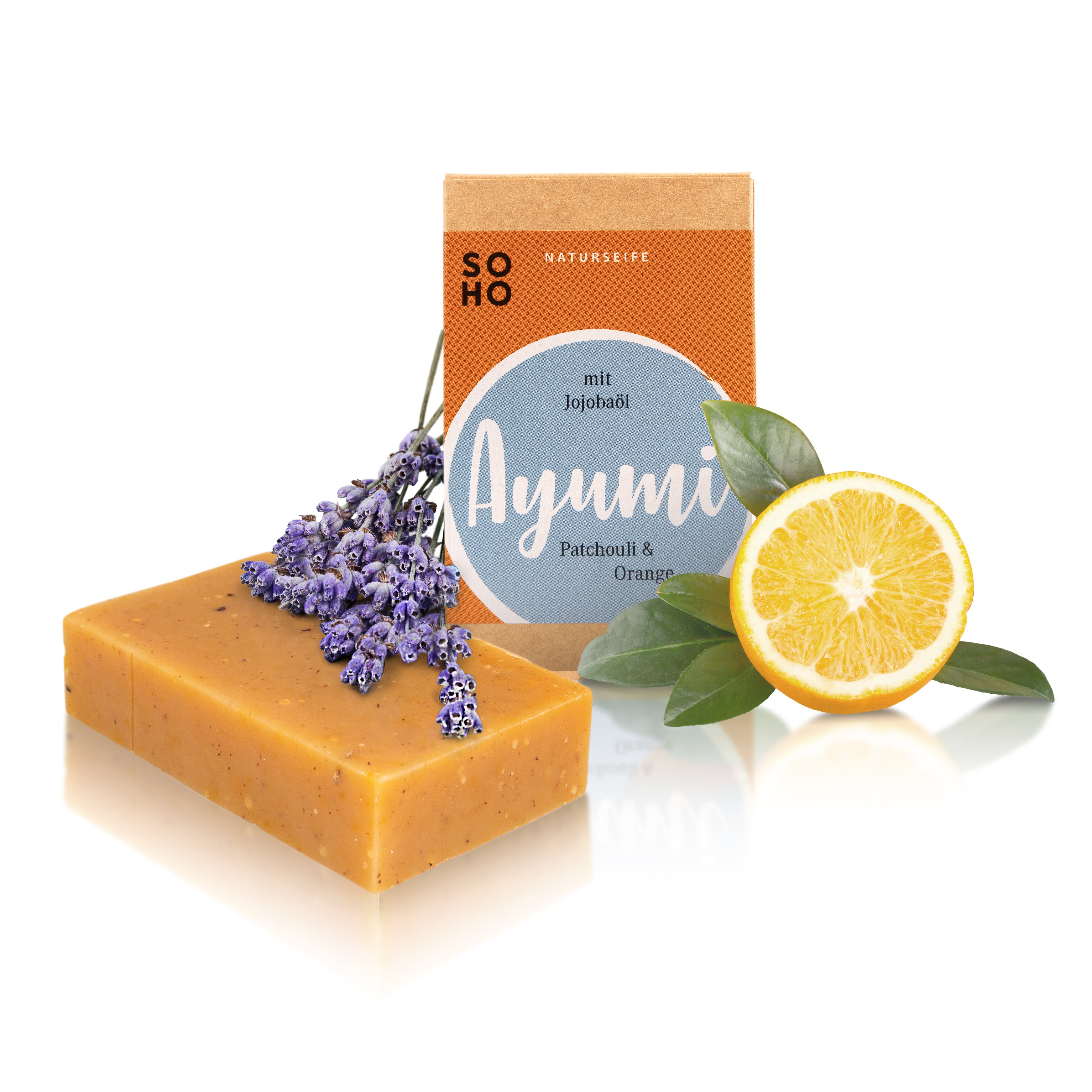Besondere Merkmale | Feste Kräuterseife mit Orangen- und Patschuliduft |